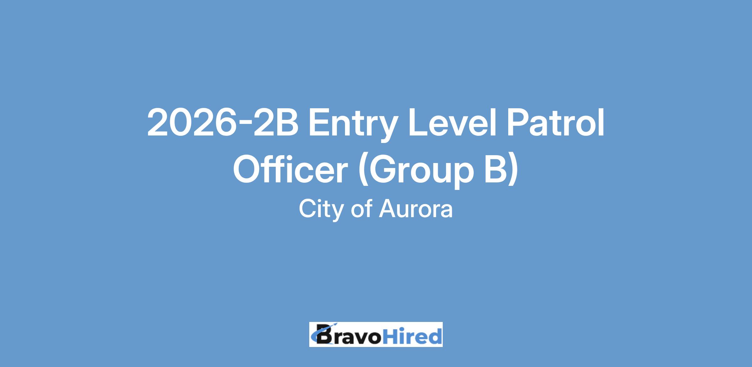 The Aurora Police Department is accepting Entry Level Patrol Officer applications to establish the 2026-2B Group B Certified Eligibility List for the projected academy that starts on May 18, 2026 and ends on November 12, 2026. The academy dates are subject to change.