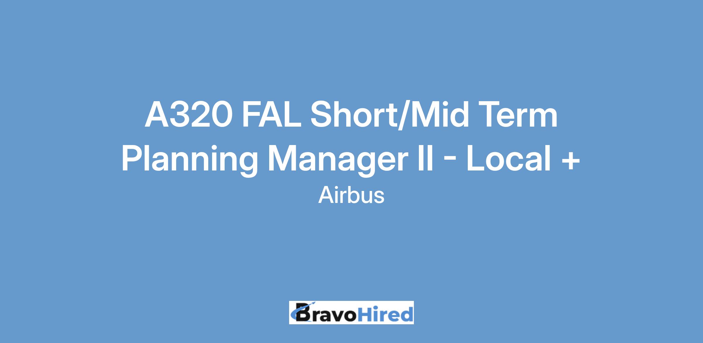 Airbus US Manufacturing Facility is looking for A320 FAL Short/Mid Term Planning Manager II - Local + to join our FAL based in Mobile, AL