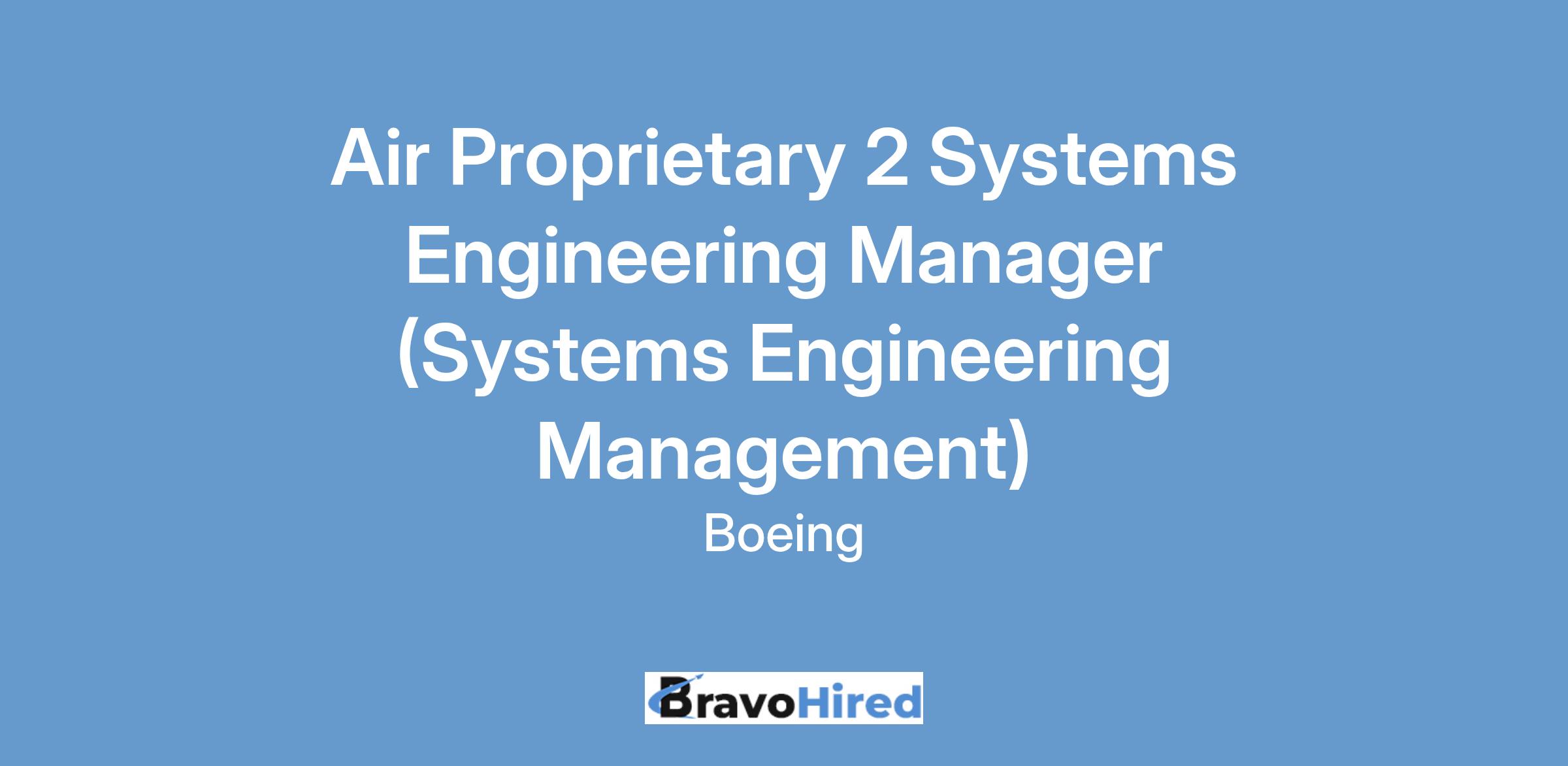 The Boeing CompanyThe Boeing Company is seeking an Air Proprietary 2 Systems Engineering, Integration, & Test (SEIT) First Line Manager located in Berkeley, MO.
