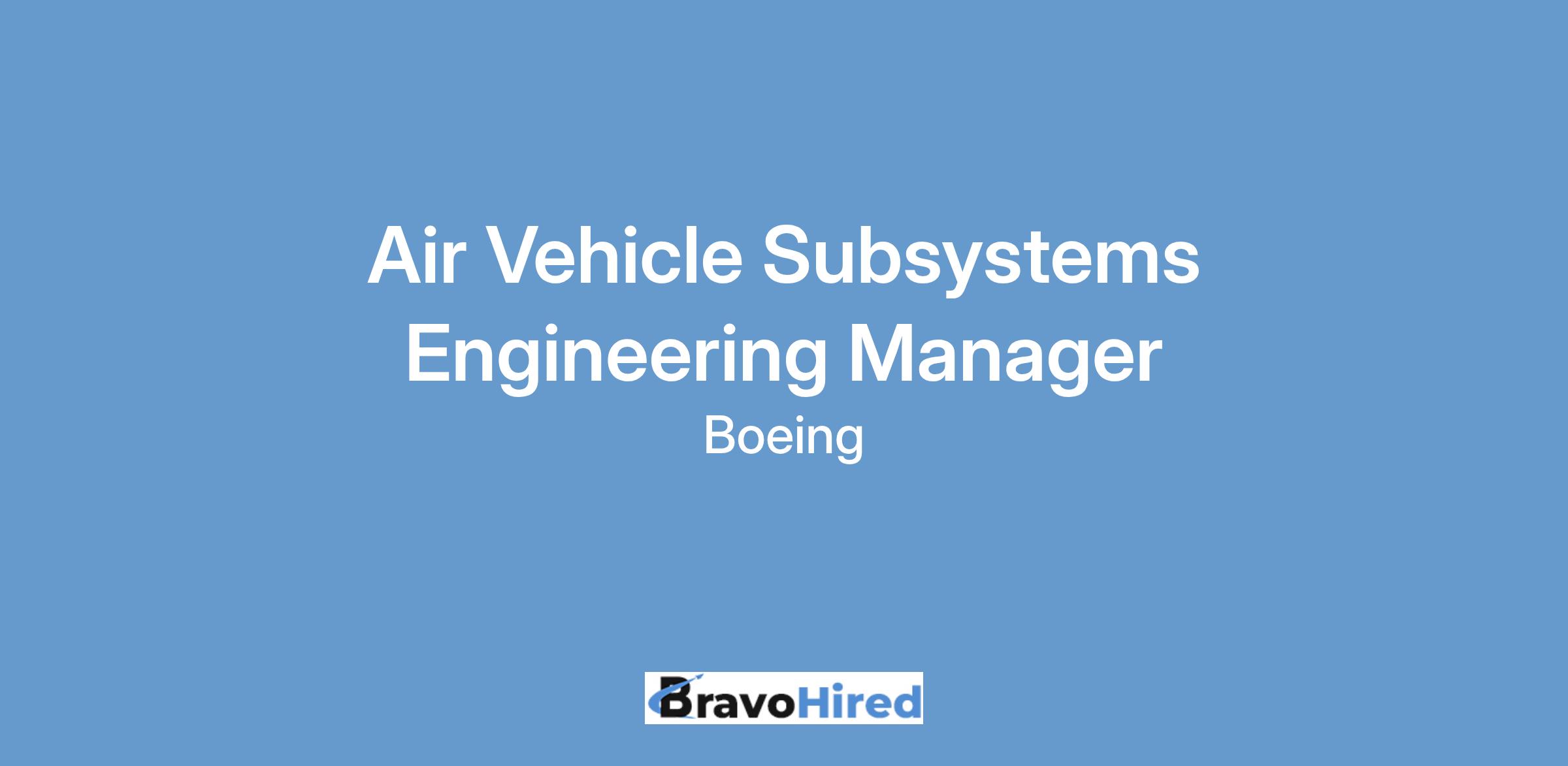 The Boeing CompanyBoeing Defense Space & Security (BDS) Air Dominance (AD) Division is seeking an Air Vehicle Subsystems Engineering Manager for advanced aircraft development programs located in Berkeley, MO.