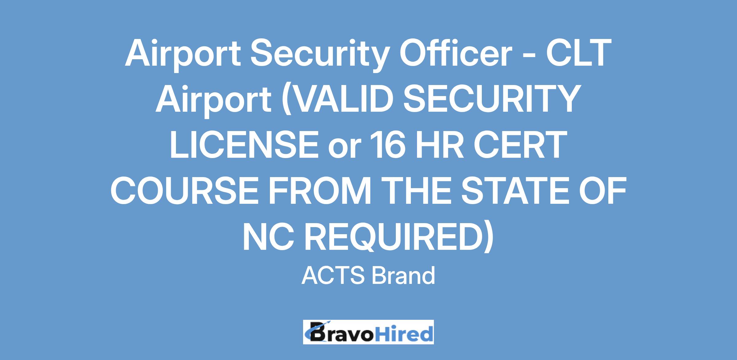 ACTS-Aviation Security Inc. has an immediate opening for an Airport Security Guard at the Charlotte Douglas International Airport in Charlotte, North Carolina - 1st, 2nd, & 3rd Shifts Available.