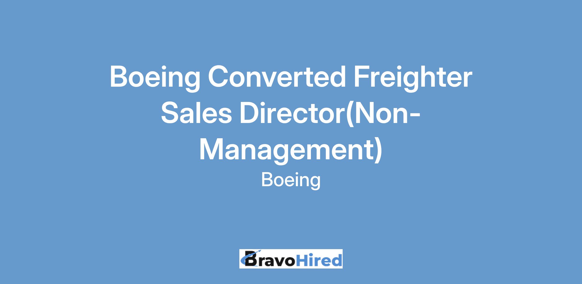 The Boeing CompanyBoeing Global Services (BGS) is seeking a Boeing Converted Freighter Sales Director(Non-Management) to join the Boeing Converted Freighter Sales Team with an extensive knowledge of Boeing airplanes and Boeing commercial customers.