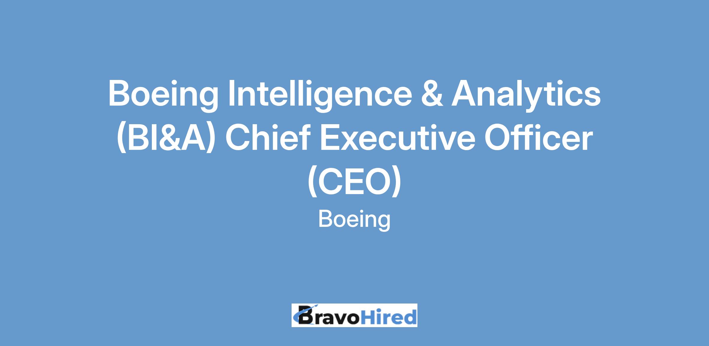 The Boeing CompanyThe Boeing Company is looking for the Chief Executive Officer (CEO) of Boeing Intelligence & Analytics (BI&A), a non-fully integrated subsidiary of the Boeing Company which will report to the Vice President of Intelligence Systems within the Space, Intelligence & Weapons Systems division. This CEO position is located at the headquarters onsite in Annapolis Junction, MD.