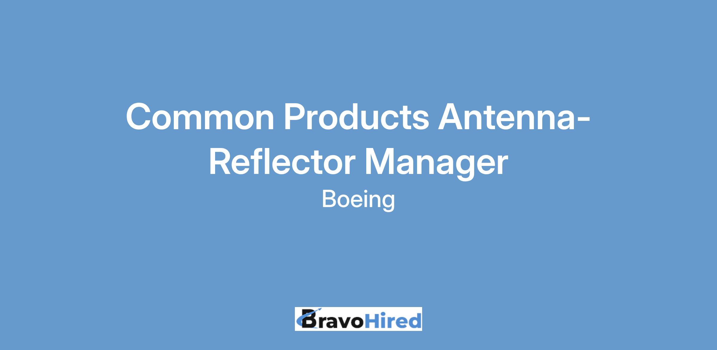 The Boeing CompanyBoeing Defense, Space & Security (BDS) / Space Mission Systems (SMS) has an exciting opportunity for an Antenna-Reflector Manager to join our Common Products team in El Segundo, California.