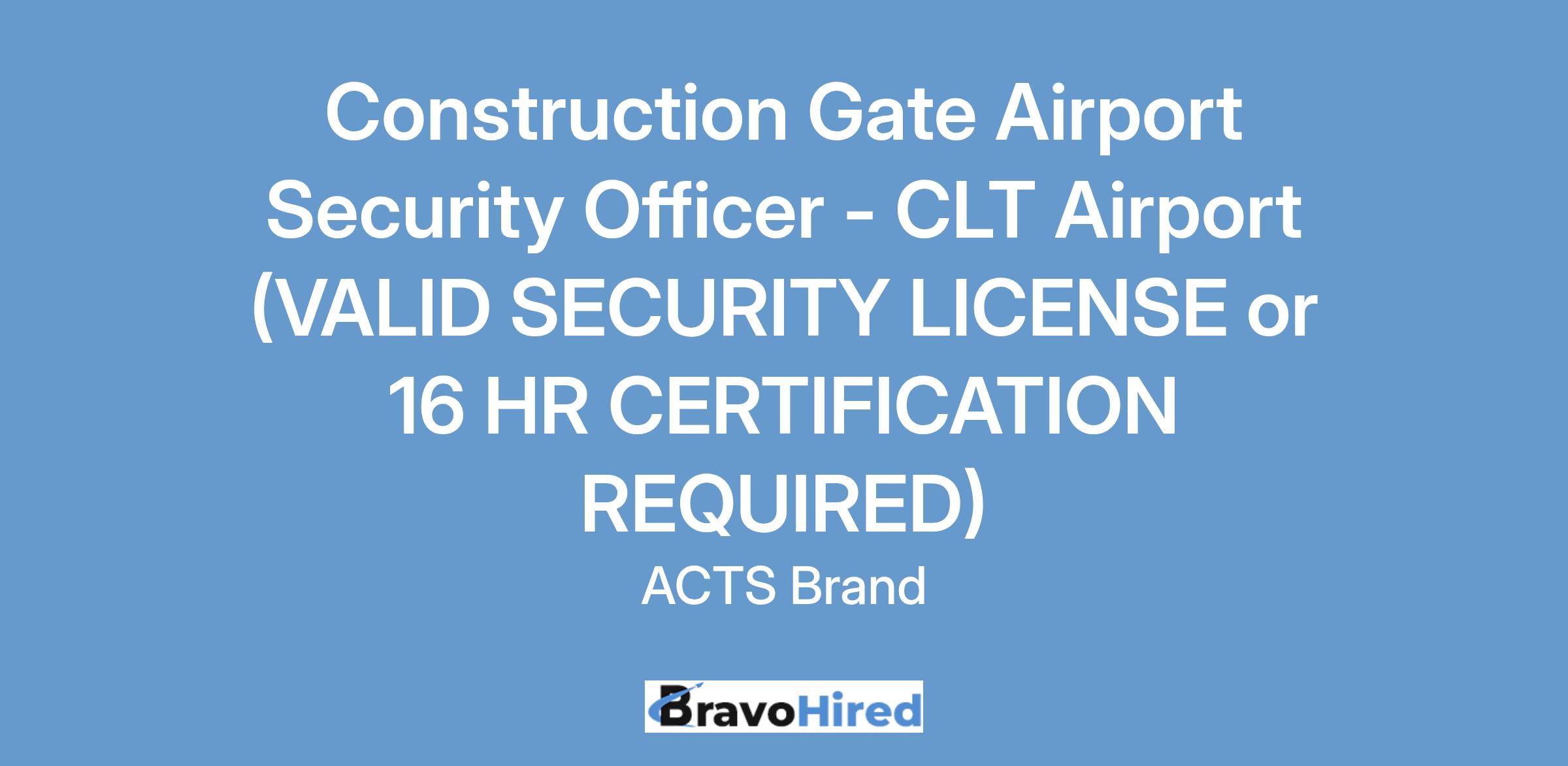 ACTS-Aviation Security Inc. has an immediate opening for a Construction Gate Airport Security Officer at the Charlotte Douglas International Airport in Charlotte, North Carolina - 1st, 2nd, & 3rd Shifts Available.