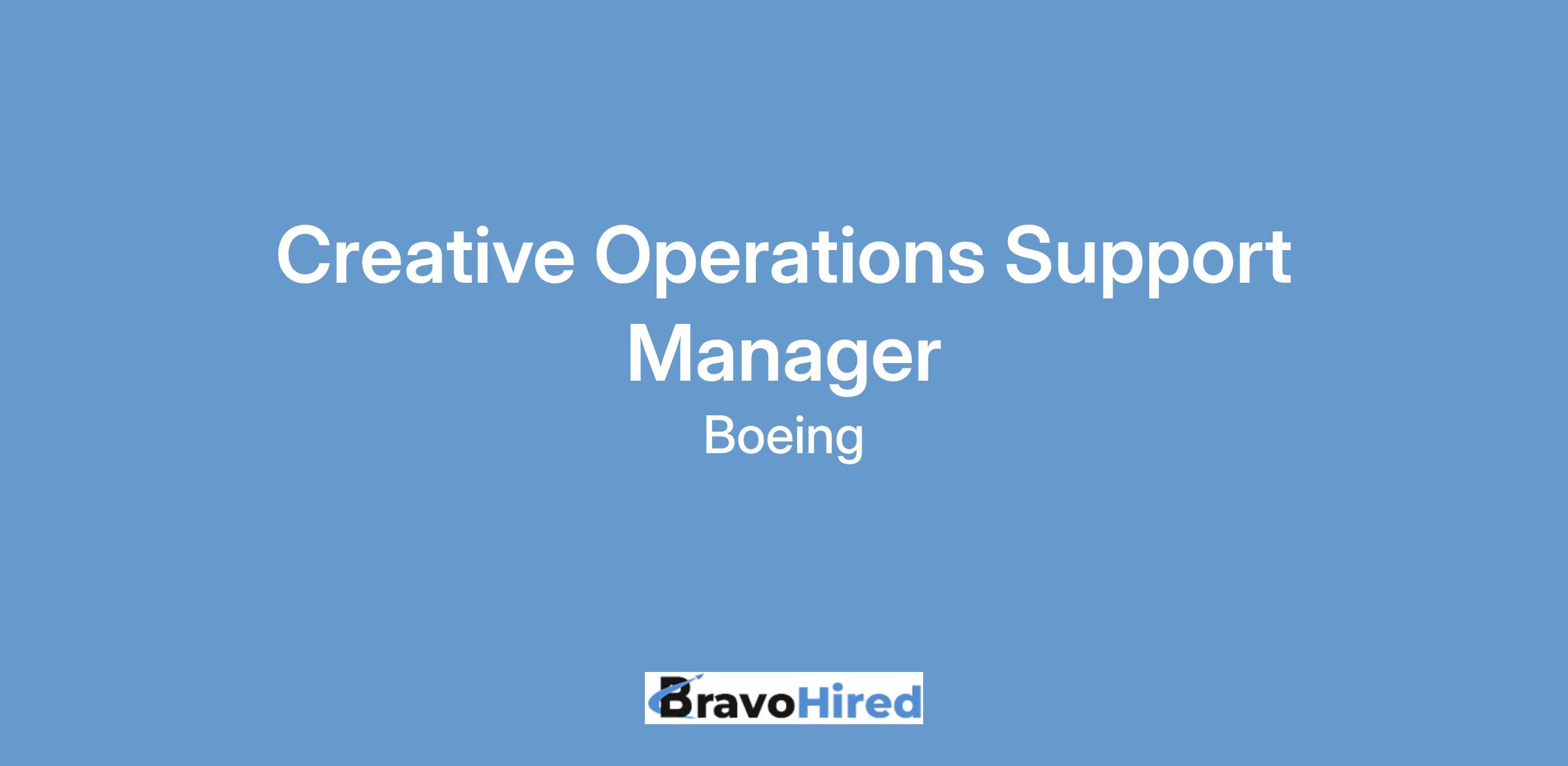Boeing Aerospace OperationsBoeing Visual Media Solutions in Jacksonville, FL is seeking a Creative Operations Support Manager (Level K) to help lead a growing creative capability. Role requires leading large teams driving creative solutions, leveraging real time technologies and innovative approaches to production. This position will be responsible for integrating with teams across the enterprise in support of a multitude of creative projects spanning commercial and defense platforms.