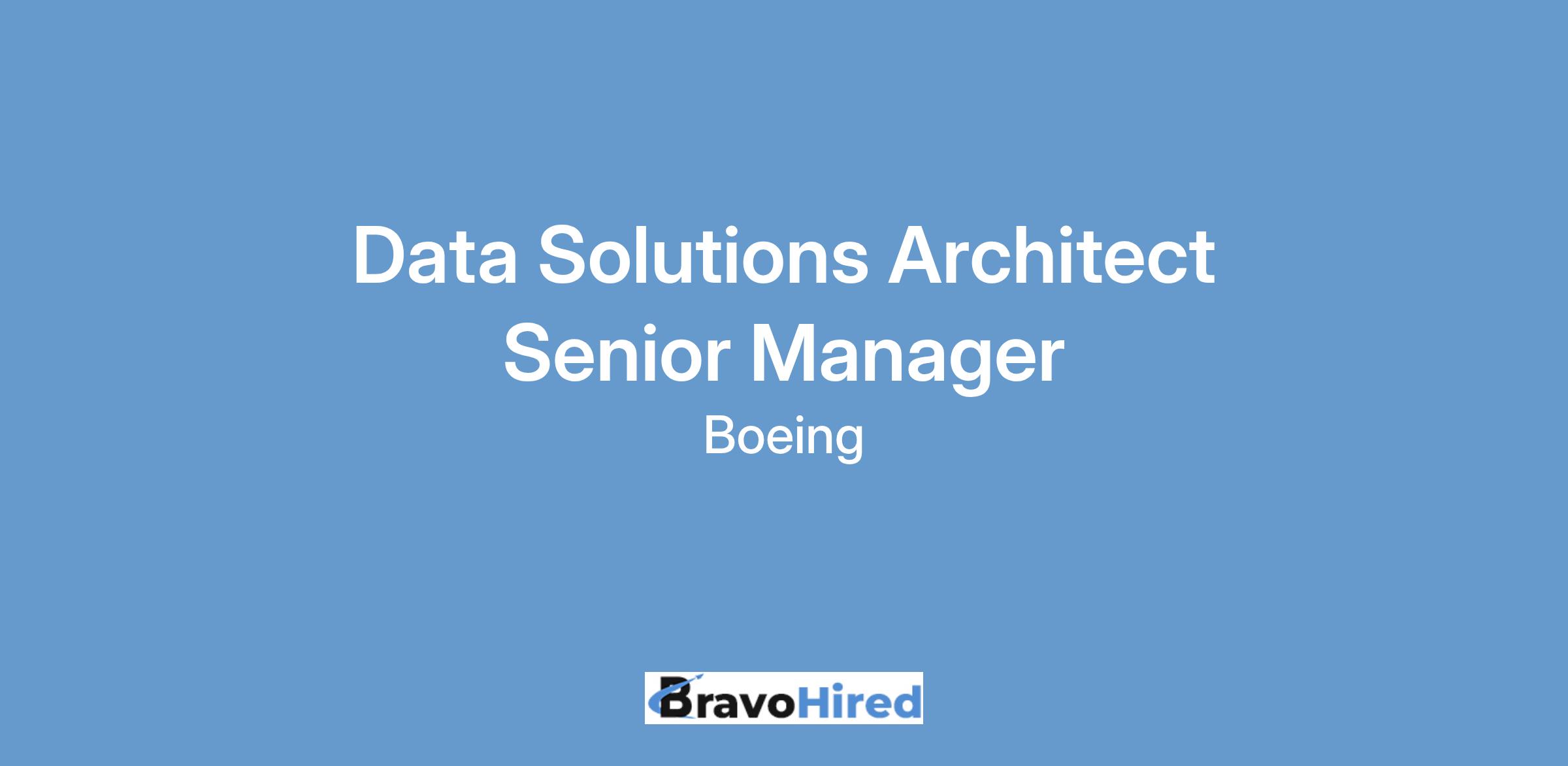 The Boeing CompanyThe Boeing Company’s Talent Analytics and Innovations team is currently seeking a Data Solutions Architect Senior Manager to enhance excellence within our People Analytics organization. This role can be based in Seattle, WA, North Charleston, SC, Berkeley, MO, Chicago, IL or Arlington, VA.