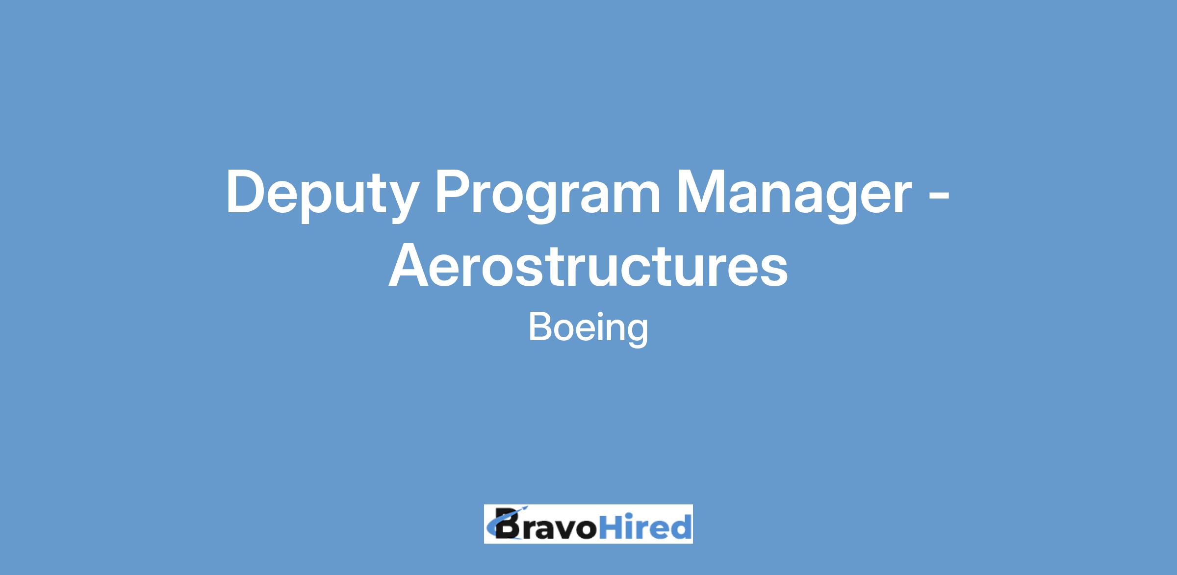 The Boeing CompanyBoeing Global Services (BGS) has an opening for an experienced Deputy Program Manager (Level 5) who will support the Profit & Loss (P&L) responsibility, Program customer satisfaction, and operational performance of the Aerostructures portfolio businesses.