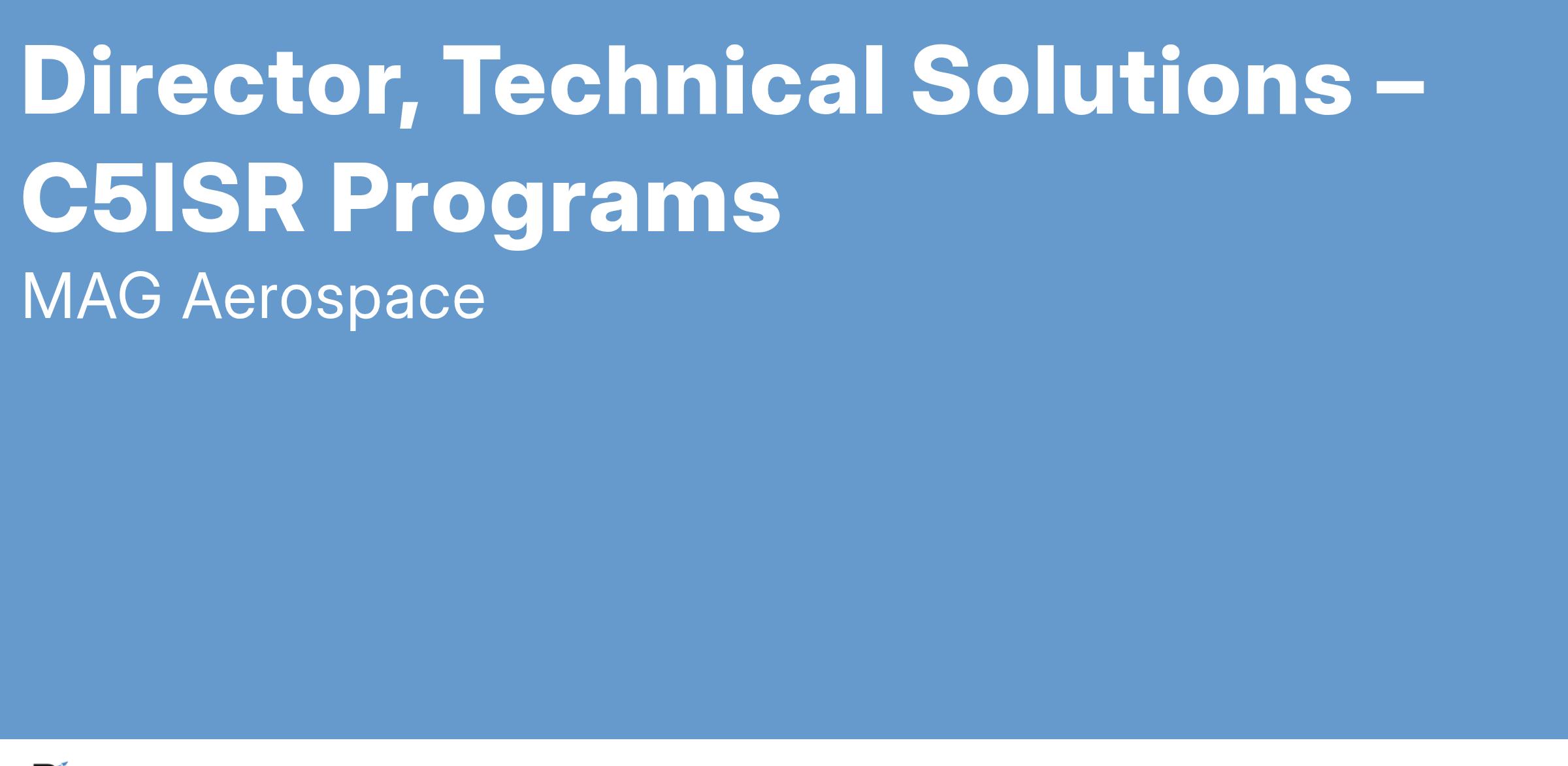 MAG Aerospace is seeking a Director of Technical Solutions reporting to the SVP C5ISR Solutions Business Unit General Manager. The Director will be responsible for leadership in the development of technical solutions for current programs and major opportunity pursuits. Also, leadership is development of “technical roadmap” for organization and then execution of the tasks to implement the roadmap, including working the tasks to get customer and internal funding as required.