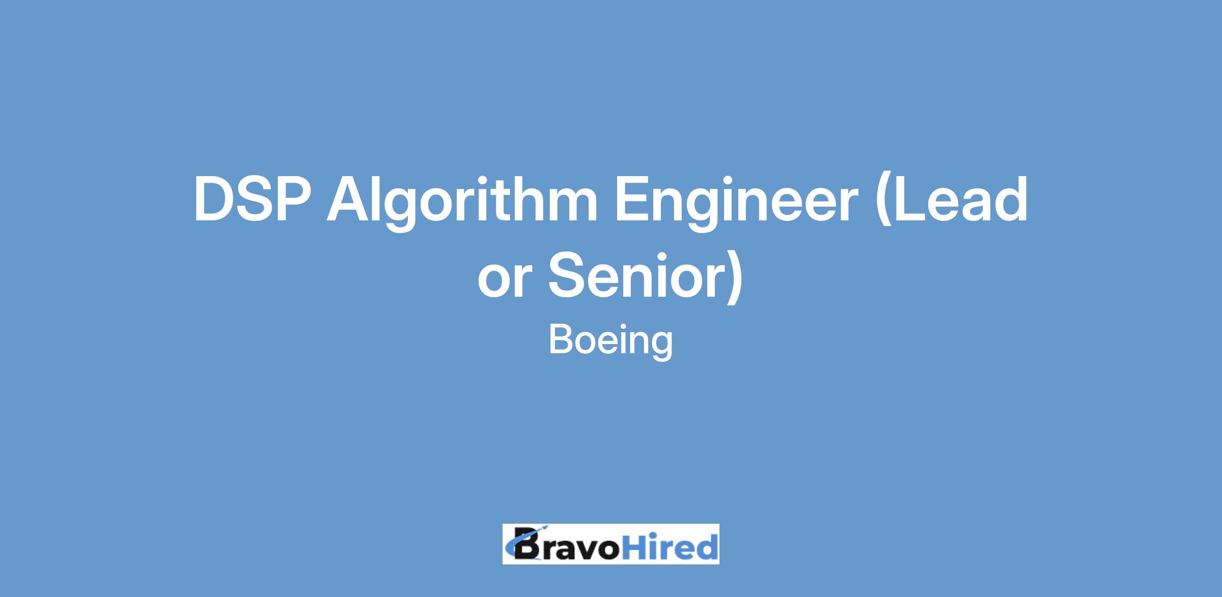 The Boeing CompanyBoeing Defense, Space and Security is seeking DSP Algorithms Engineers (Lead or Senior) to join the Space, Intelligence and Weapons Systems teams in El Segundo, CA! Boeing's Space, Intelligence and Weapons Systems oversees the company's major commercial and government satellite and ground programs for communications, national defense, and other missions.