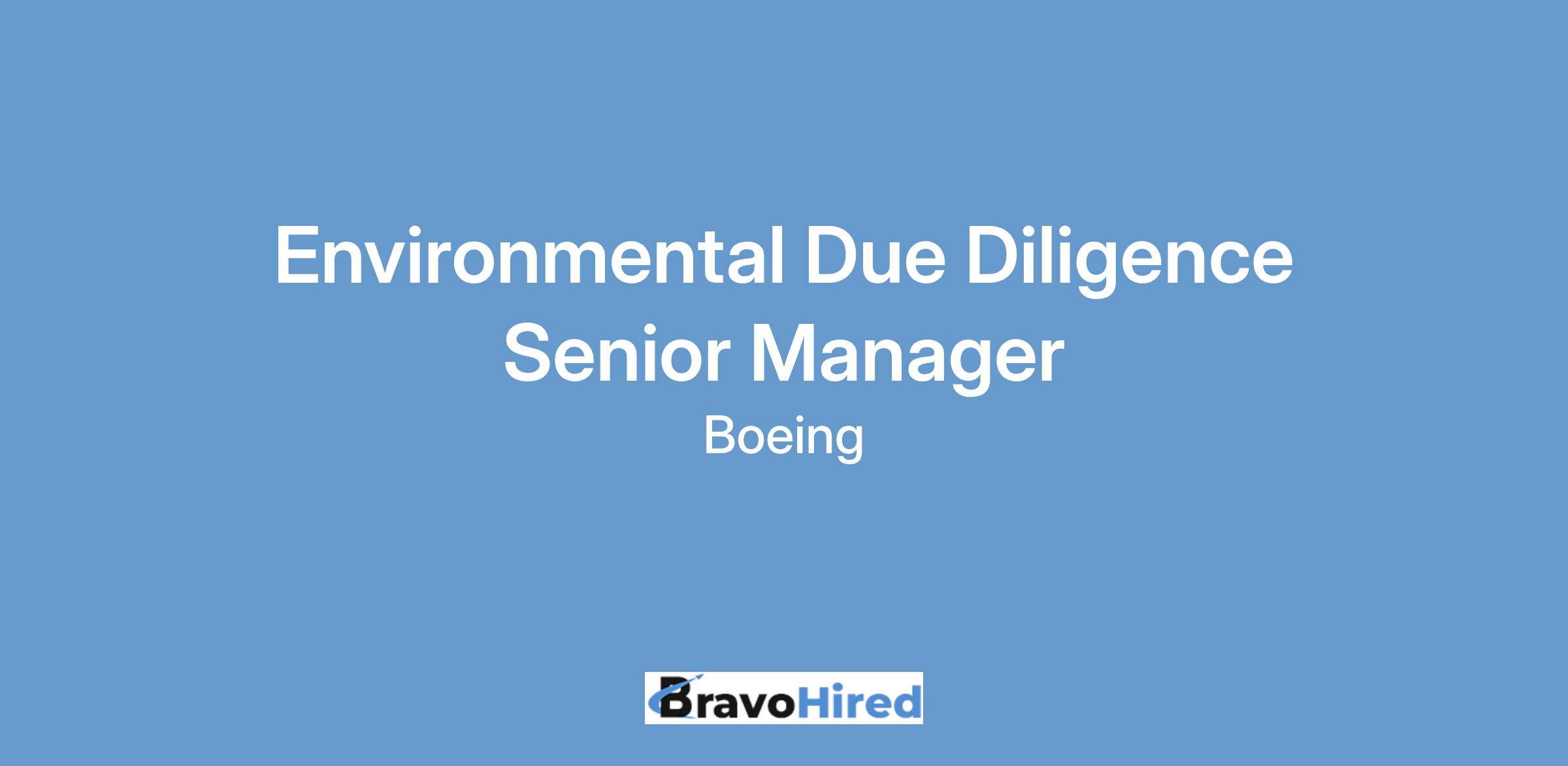 The Boeing CompanyThe Global Enterprise Sustainability (GES) organization was formed to support Boeing’s mission to connect, protect and explore our world and beyond, safely and sustainably. Our Environmental Remediation and Due Diligence team has an outstanding opportunity for a technical and strategic leader and problem solver who thrives in a collaborative, fast-paced and rapidly evolving environment. We are seeking an Environmental Due Diligence Senior Manager to lead the Due Diligence program and a team of project managers. This position is based in Seal Beach, CA and a minimum of three days per week in-office is required.