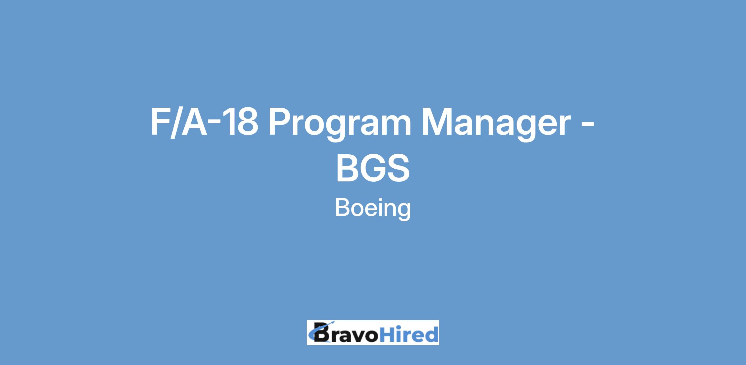 The Boeing CompanyBoeing Global Services (BGS) is seeking a highly motivated and energetic professional to act as Program Manager for the F/A-18 and EA-18G Block III Sustainment located in Hazelwood, MO. Reporting to the F/A-18 E/F and EA-18G Integrated Readiness Program Manager, the successful candidate will lead the development and delivery of all USN F/A-18 and EA-18G Block III systems.