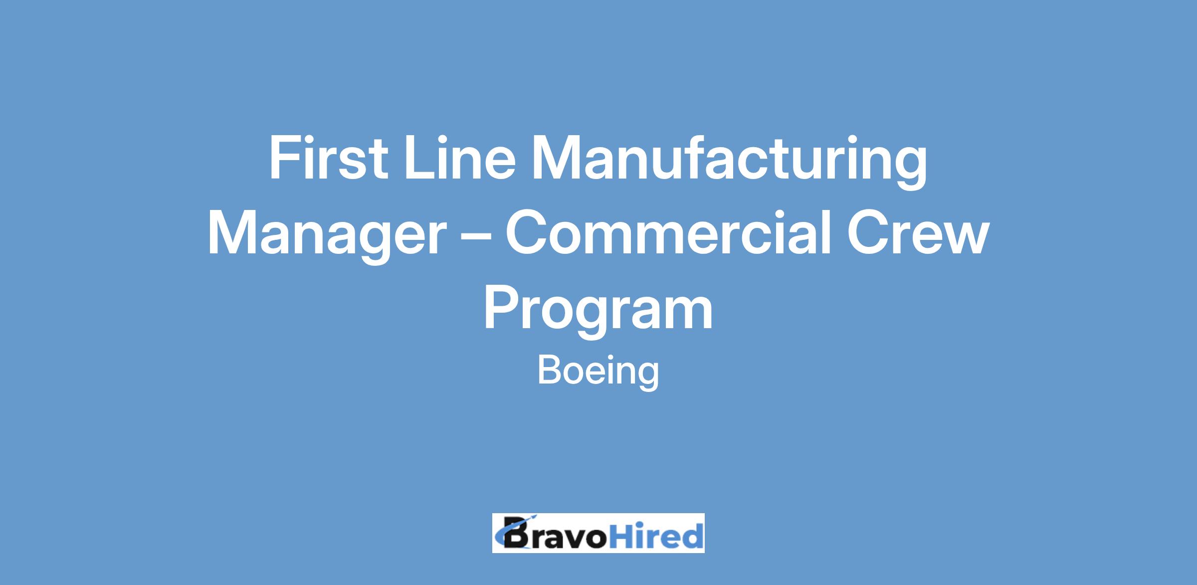 The Boeing CompanyWe are seeking a knowledgeable First Line Manufacturing Manager – Commercial Crew (Level K) to support our Commercial Crew Program at Kennedy Space Center, FL.