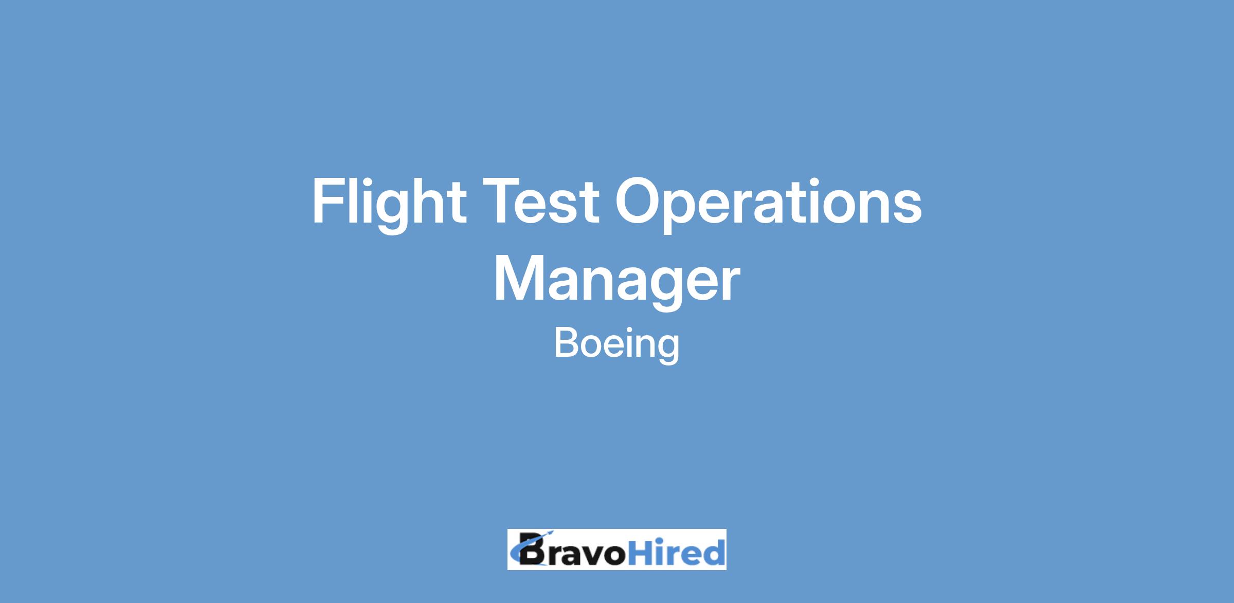 The Boeing CompanyThe Boeing Test & Evaluation (BT&E) organization is seeking a Flight Test Operations Manager to join our team in Patuxent River, MD.