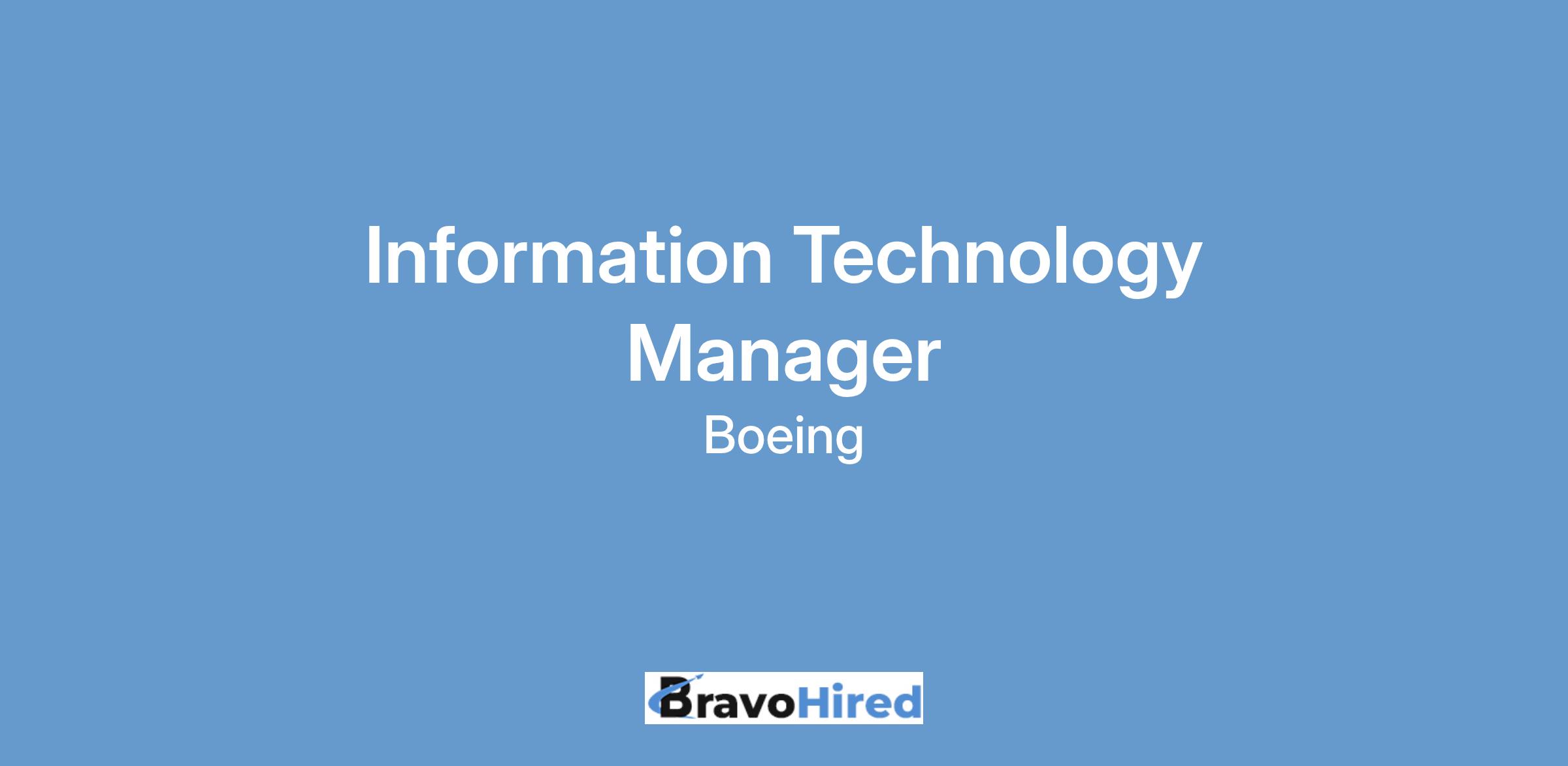 The Boeing CompanyThe Boeing Company is currently seeking an Information Technology Manager to join the Boeing Defense, Space and Security Product Lifecycle Management team in either El Segundo, CA; Hazelwood, MO; Everett, WA; Mesa, AZ; North Charleston, SC; or Kent, WA.