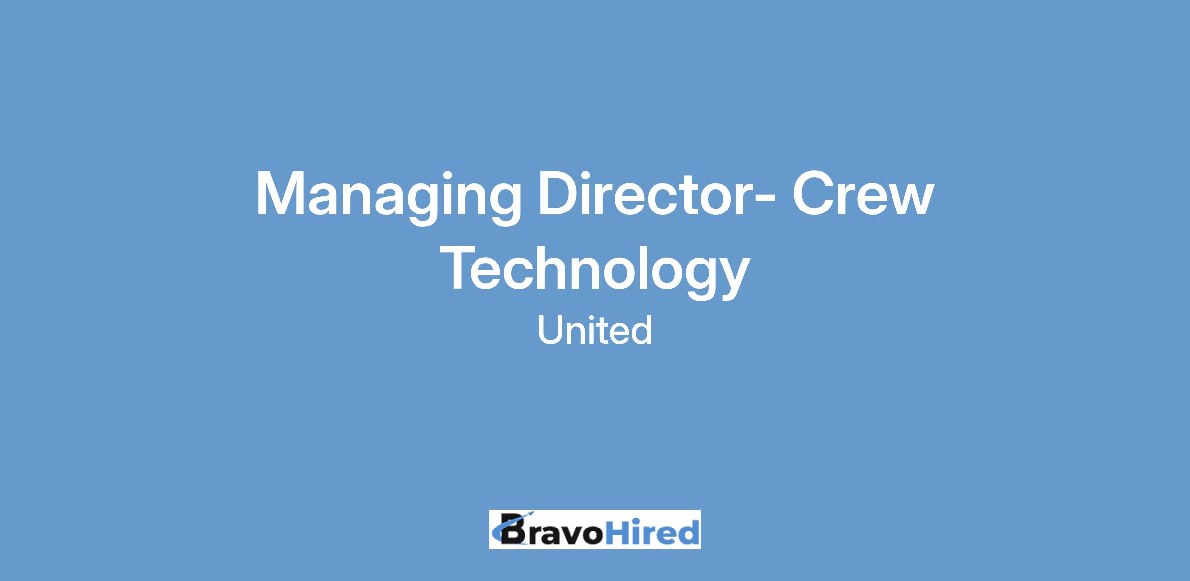 The Managing Director, Crew Technology is a senior leadership role responsible for defining and delivering the technology strategy that powers United’s crew operations, training centers, pilot and crew pay systems, and onboard catering capabilities. This role sits at the intersection of technology, operations, and employee experience—playing a critical part in ensuring our frontline teams have the tools, data, and systems they need to operate efficiently, safely, and in alignment with United’s core values and business objectives. Reporting to the VP within Digital Technology, the Managing Director leads a multi-disciplinary team of digital technology professionals to deliver innovative, scalable, and compliant solutions. This leader will collaborate closely with enterprise stakeholders to drive digital transformation, improve crew satisfaction, and unlock operational excellence. This role will also work closely with our Advanced Analytics organization in order strategically deliver the latest AI capabilities in technology products. The ideal candidate is a strategic thinker and strong operator, capable of managing complex systems and regulatory environments, while fostering a culture of innovation, agility, and continuous improvement.