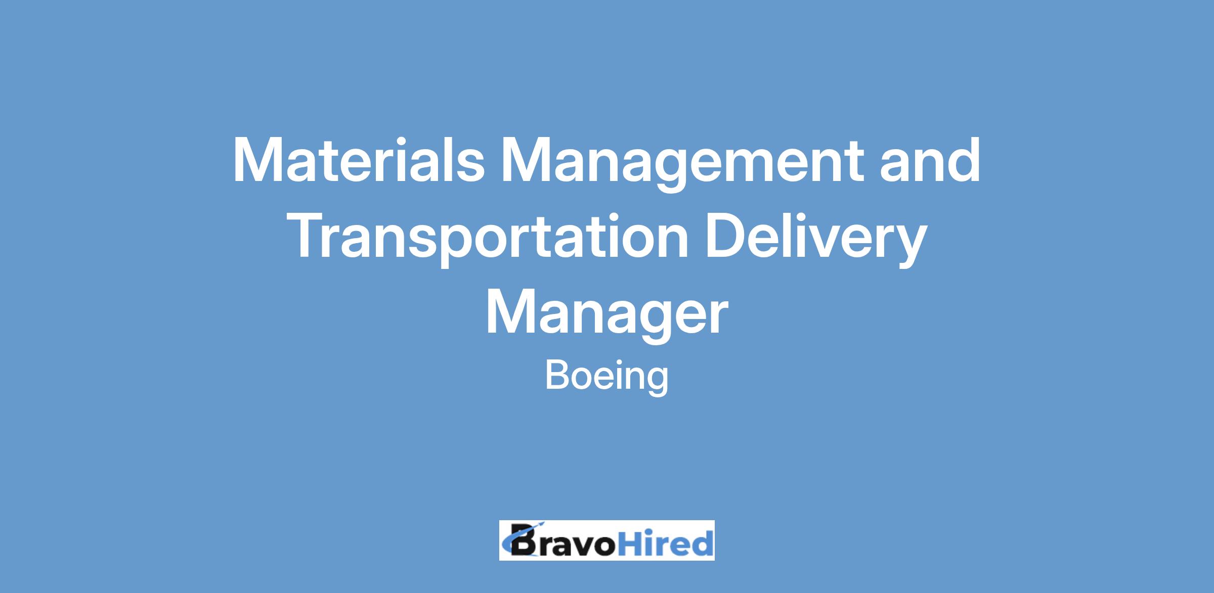 Our team is currently hiring a Level K Materials Management and Transportation Delivery Manager.