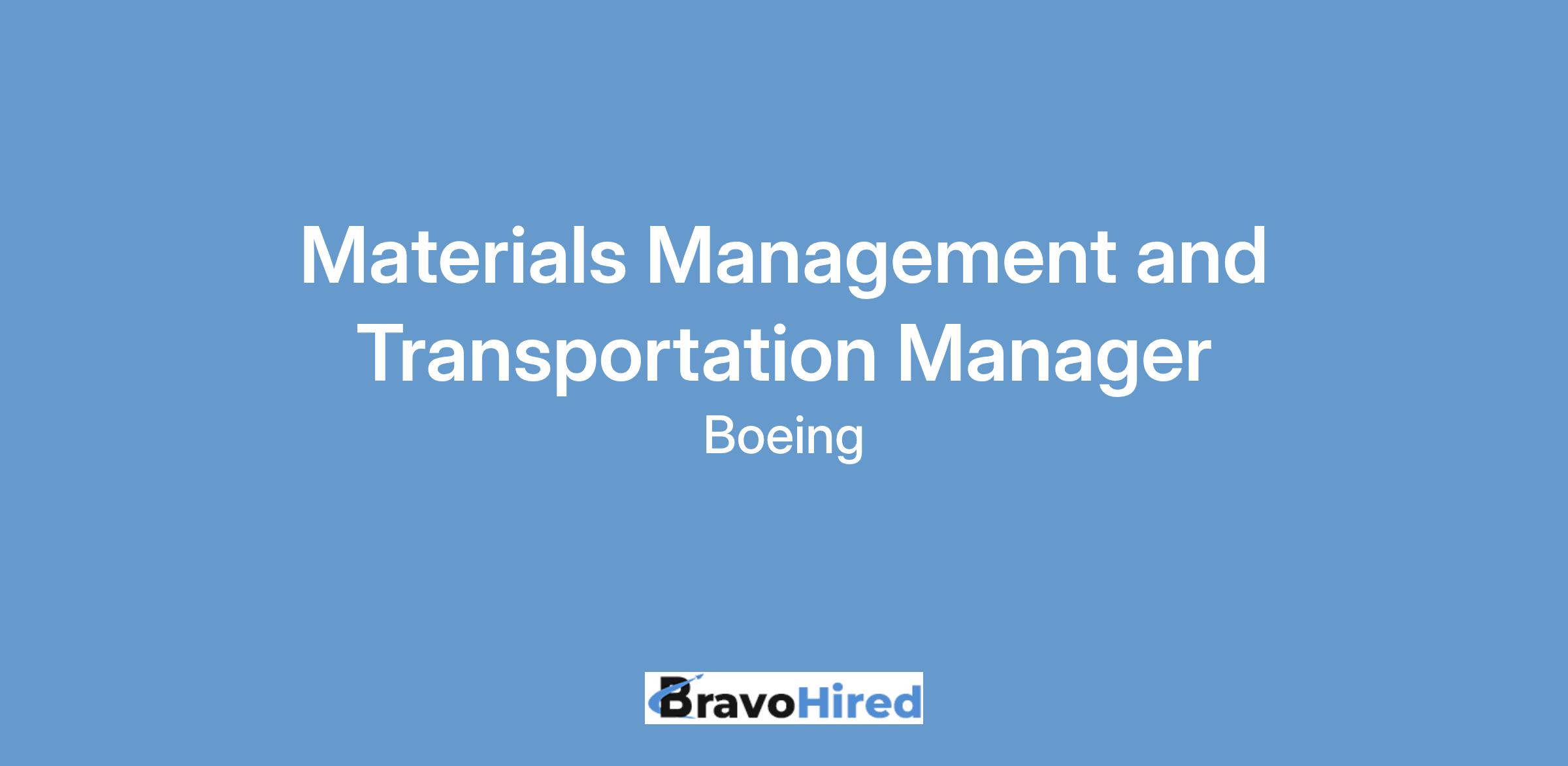 The Boeing CompanyBoeing South Carolina (BSC) Fulfillment is seeking a Materials Management & Transportation Manager to lead a hands-on team that delivers parts, kits, tools and equipment to the BSC flightline. You will ensure readiness, schedule adherence, technical quality, and safety across materials operations that directly enable on-time aircraft delivery.
