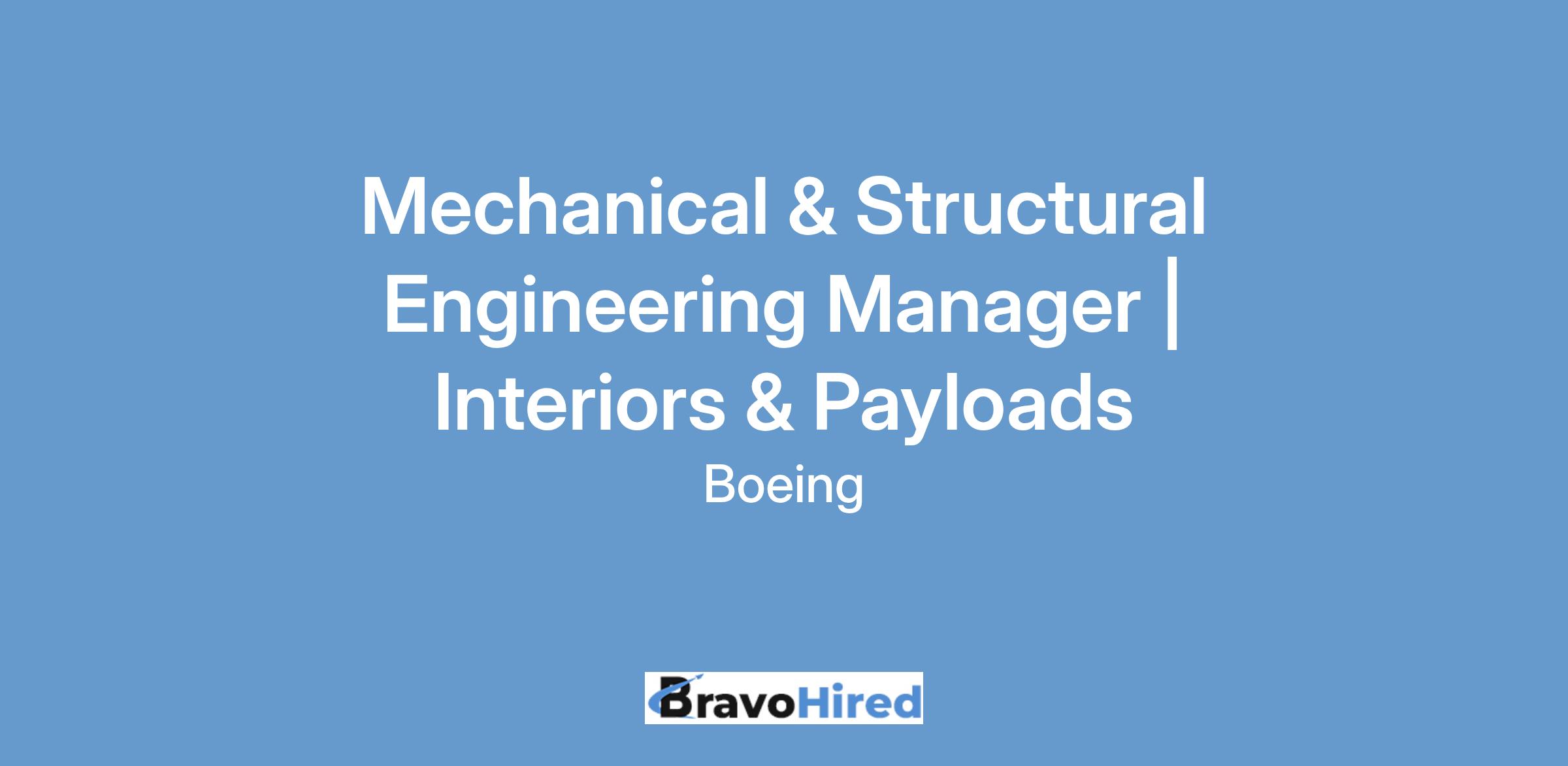 The Boeing CompanyBoeing Defense, Space & Security (BDS) Mobility, Surveillance & Bombers (MS&B) division is seeking a passionate, engaged, and qualified Mechanical & Structural Engineering Manager to support the Interiors & Payloads Capability located in Oklahoma City, OK. Be part of the team that connects rigorous technical design to the future of Executive Transports.