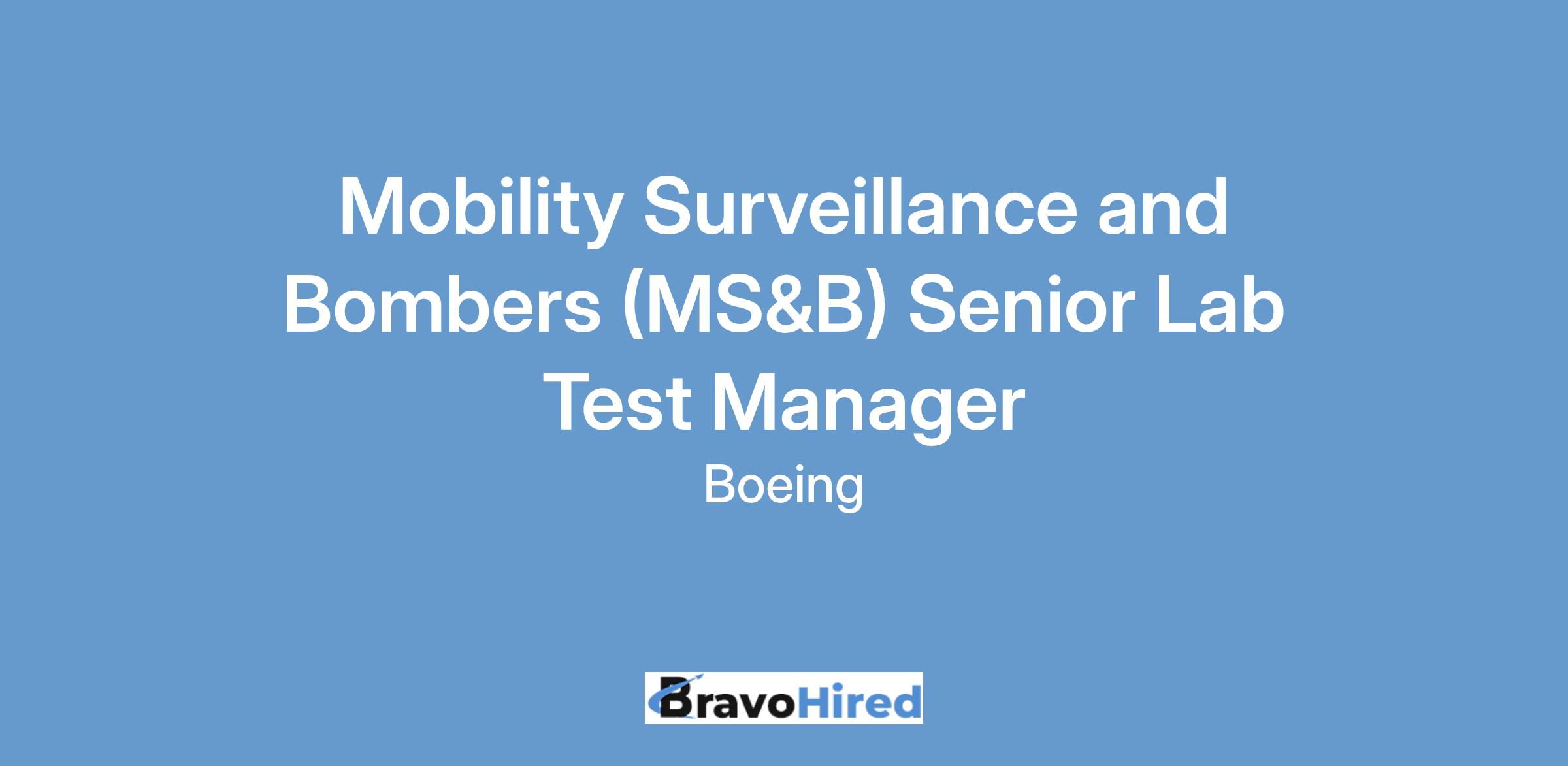 The Boeing CompanyThe Boeing Company is seeking a Mobility Surveillance and Bombers (MS&B) Senior Lab Test Manager to join our team in Seattle, WA. This position will lead all lab test activities for Boeing Test & Evaluation (BT&E) in support of MS&B programs, with primary focus on B-52J for the first 12-18 months. The manager will integrate with program leadership, engineering, operations and BT&E capabilities to lead test proposal development and test program planning and execution. This position will engage throughout the product life cycle, ensuring program test strategies and objectives are effectively deployed.
