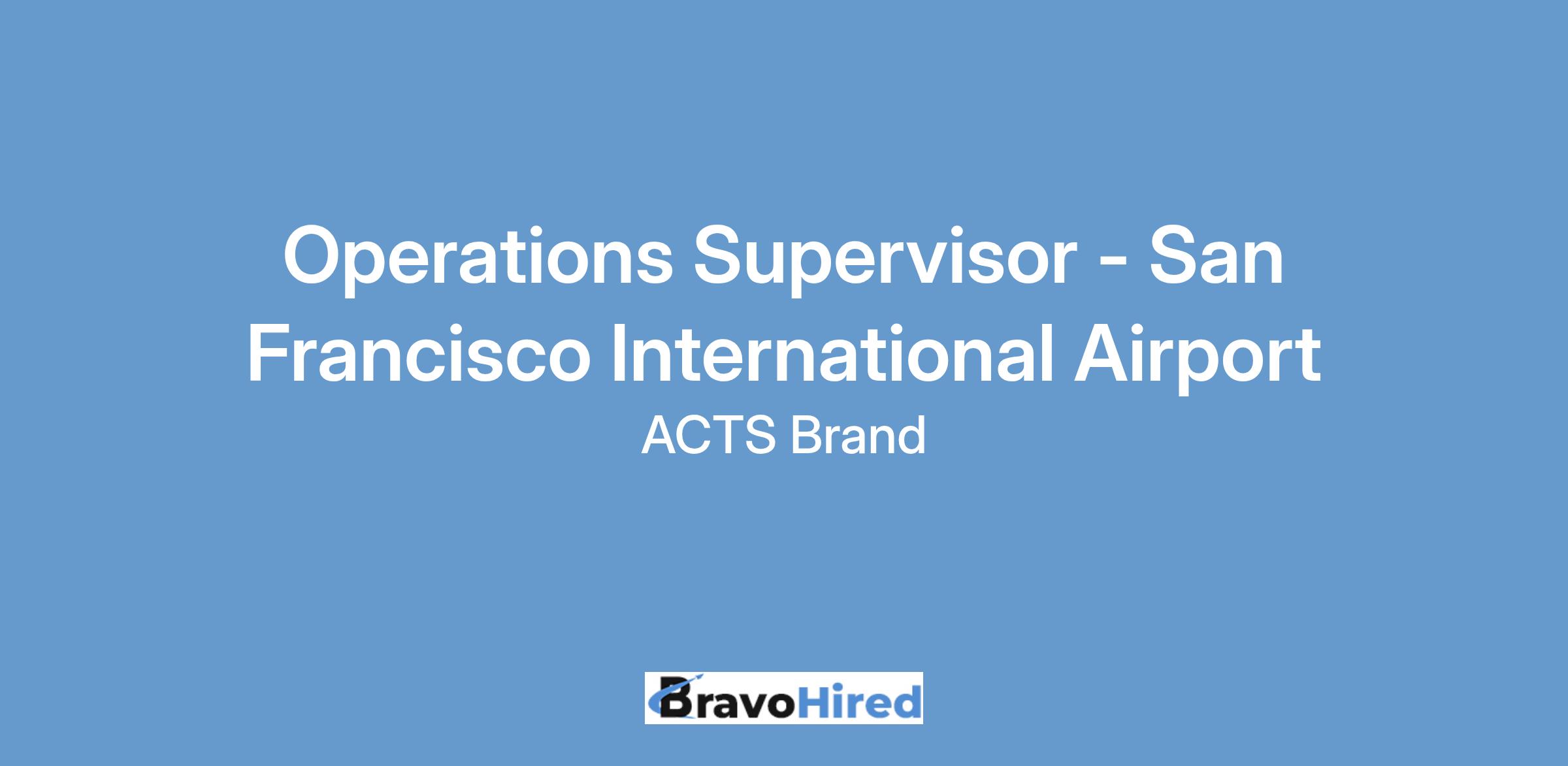 ACTS-Aviation Security Inc. has an immediate opening for an Operations Supervisor at the San Francisco International Airport, San Francisco, CA.