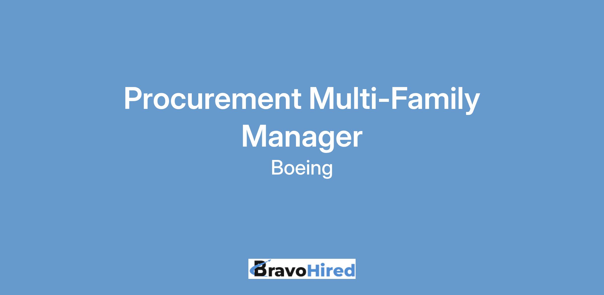 The Boeing CompanyBoeing Commercial Airplanes (BCA) is looking for a Procurement Multi-Family Senior Manager to join our Materials and Standards Contracts and Operations team in Everett, WA.