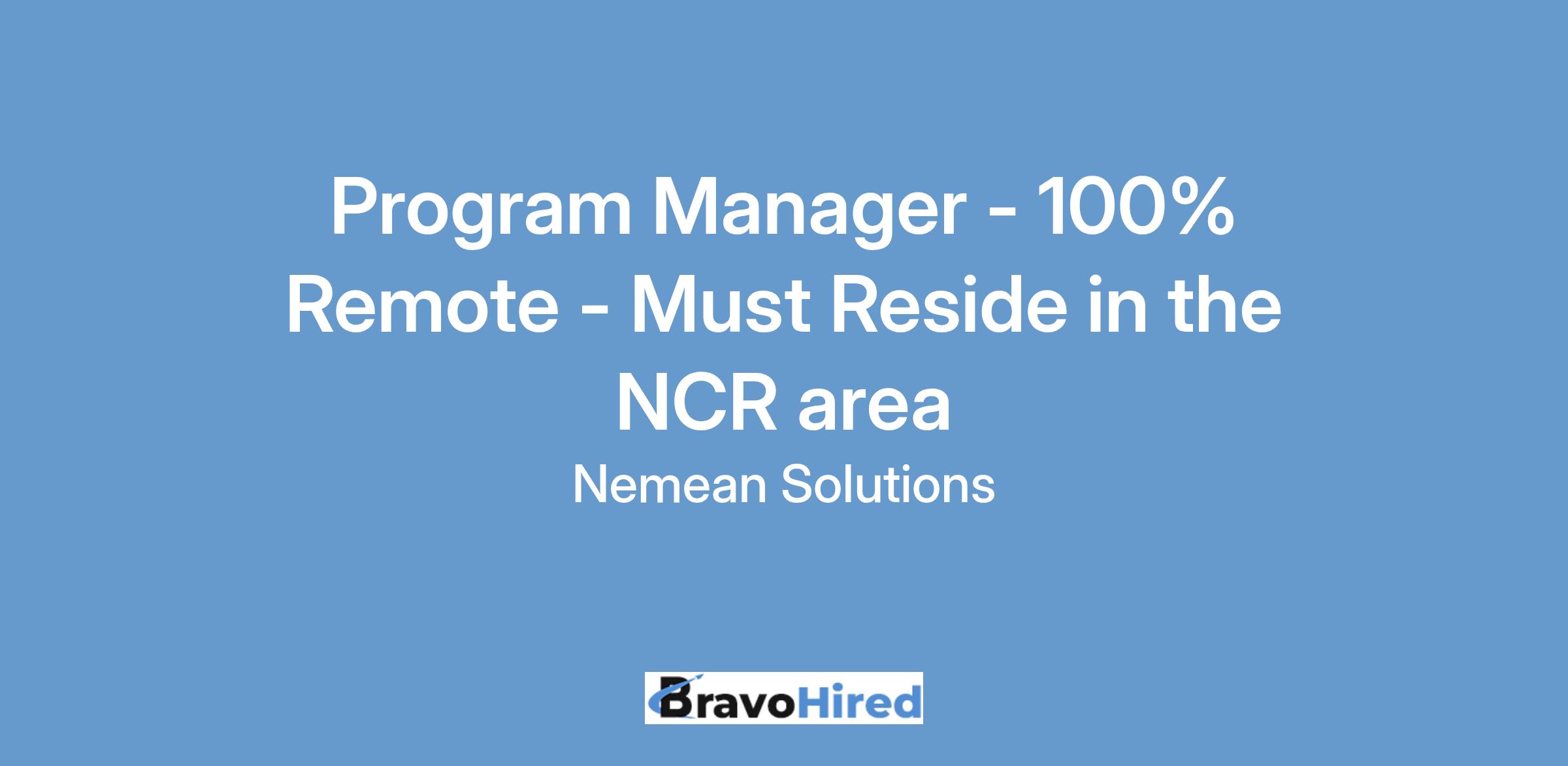 Program Manager - 100% Remote - Must Reside in the NCR area