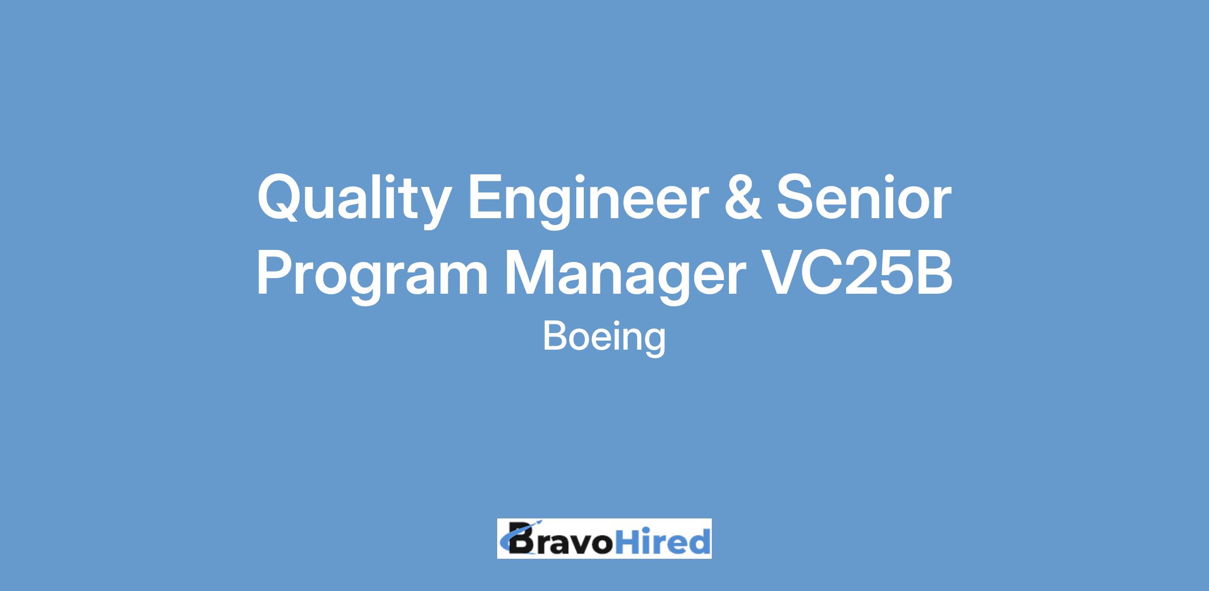 This role will serve as a Quality Engineer and Senior Program Manager to lead the VC-25B program.