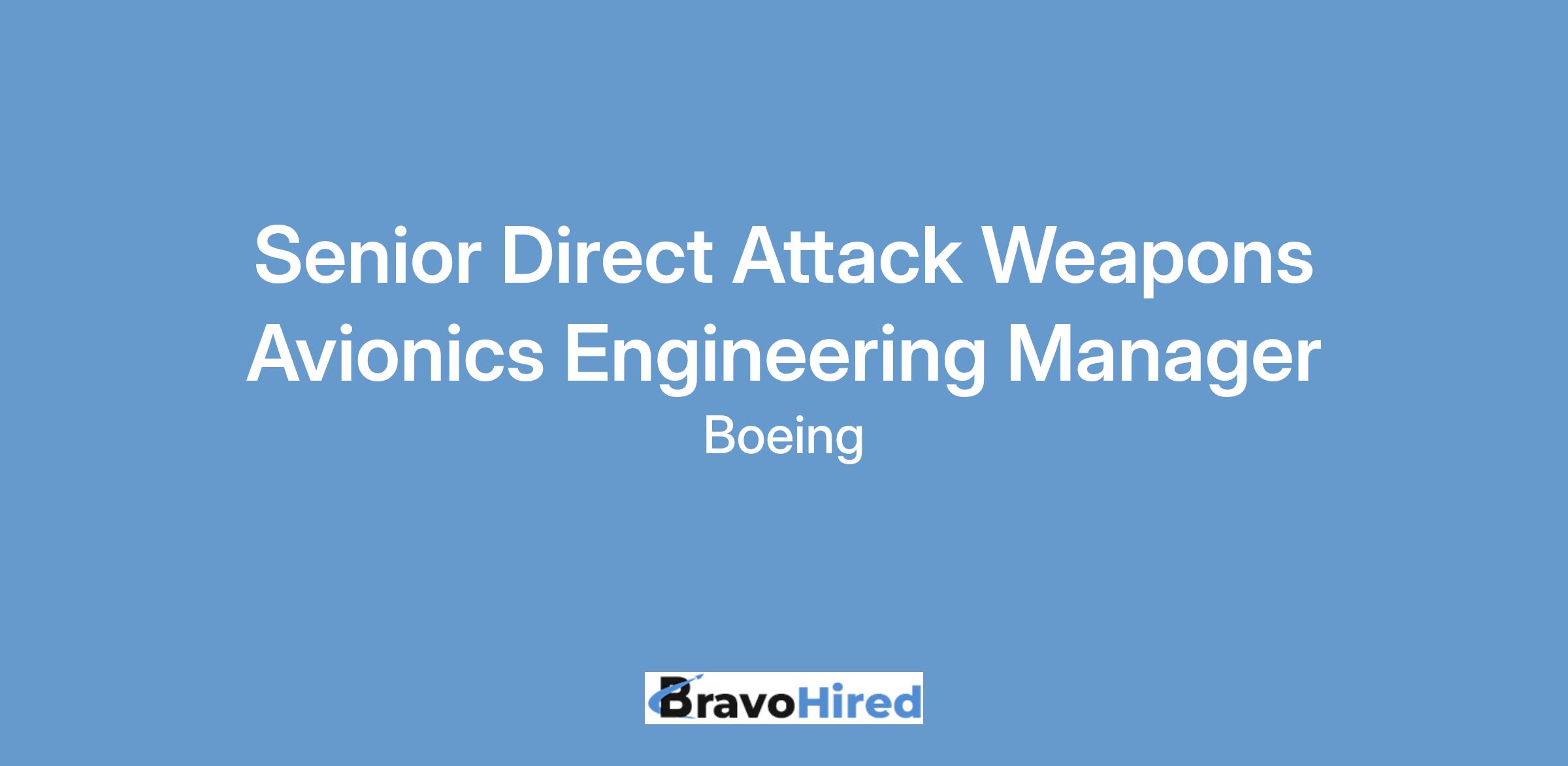 The Boeing CompanyBoeing Defense, Space & Security (BDS) is seeking a Senior Direct Attack Weapons Avionics Engineering Manager in support of electronics and electrical engineers within the Direct Attack Avionics Engineering capability in Saint Charles, MO.
