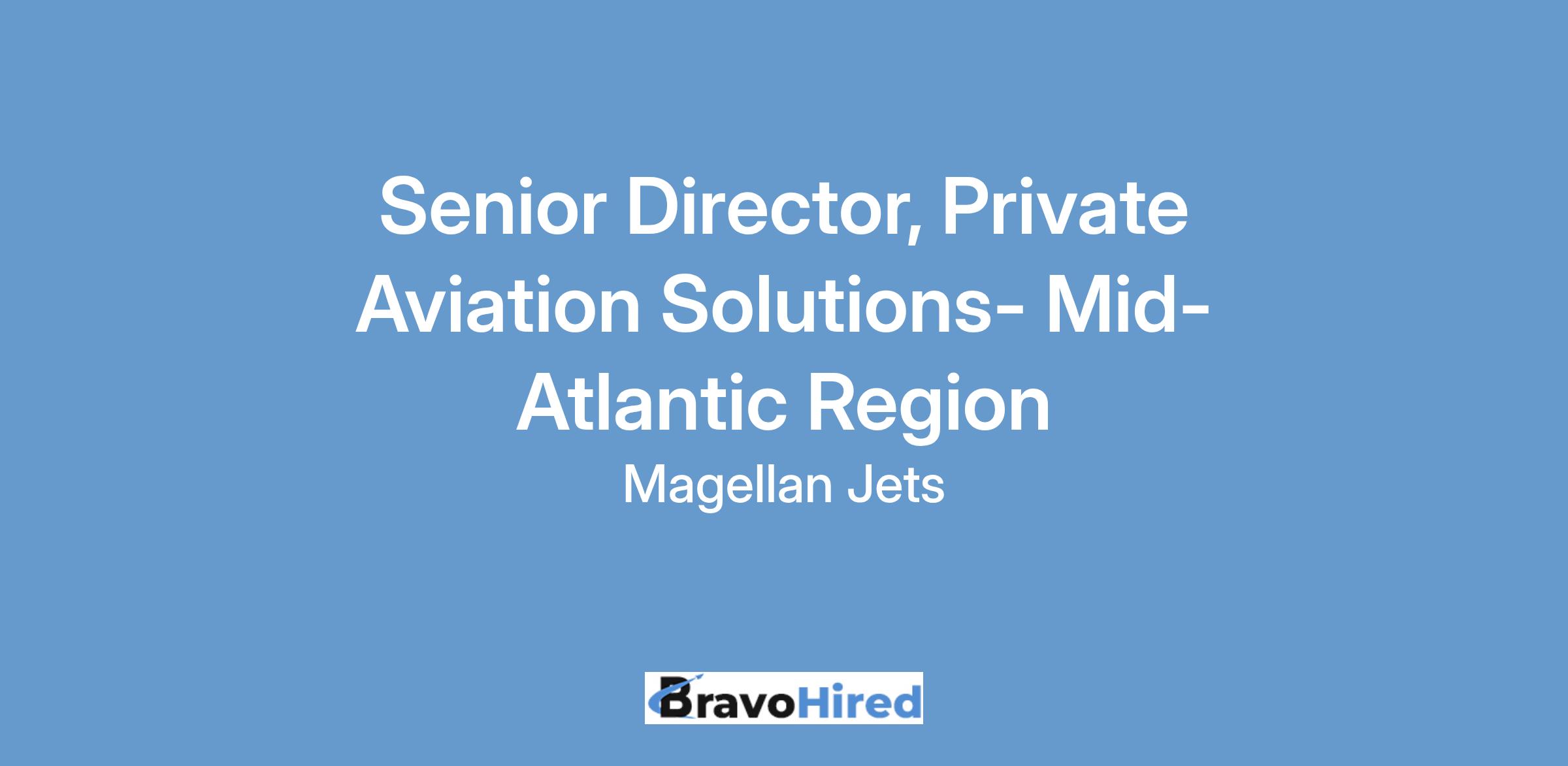 This job description is intended to convey information essential to understanding the scope of the Senior Director, Private Aviation Solutions- Mid-Atlantic Region position. It is not an exhaustive list of responsibilities, duties, and skills required for the role. Magellan Jets reserves the right to amend this job description at any time to reflect business needs and operational priorities.