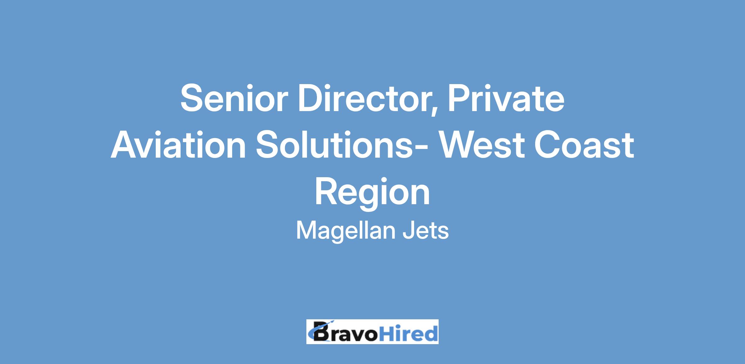 This job description is intended to convey information essential to understanding the scope of the Senior Director, Private Aviation Solutions- West Coast Region position. It is not an exhaustive list of responsibilities, duties, and skills required for the role. Magellan Jets reserves the right to amend this job description at any time to reflect business needs and operational priorities.