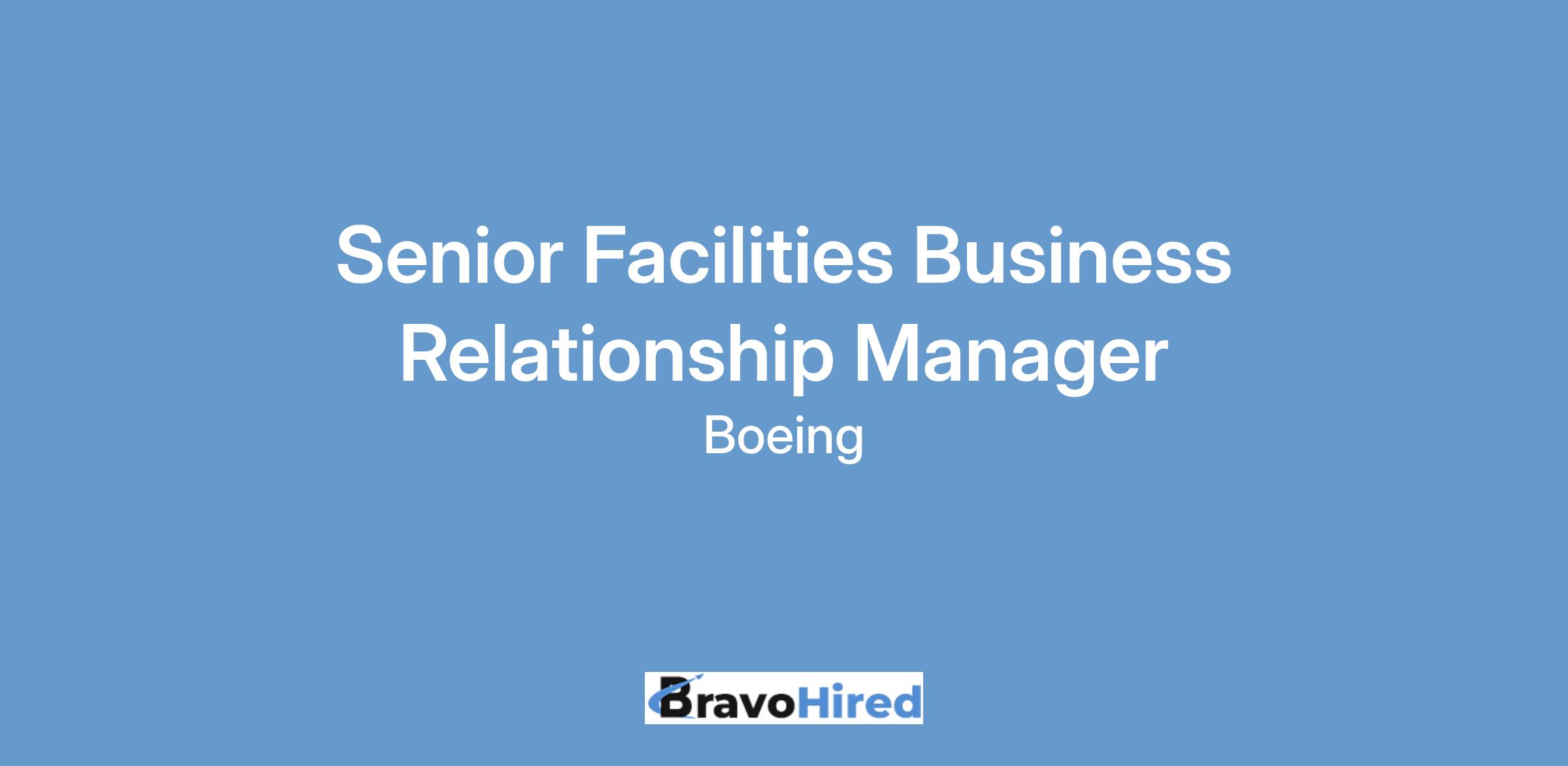 The Boeing CompanyBoeing is seeking a Senior Facilities Business Relationship Manager to join our Boeing Defense, Space and Security (BDS) Integration team in Mesa, Arizona.