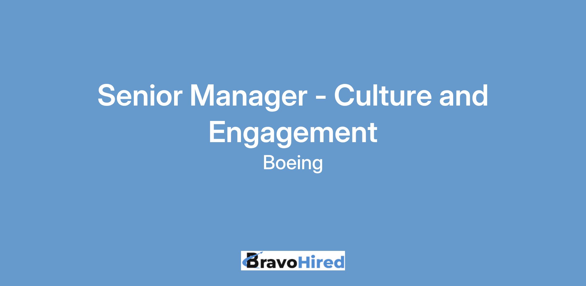 The Boeing CompanyThe Boeing Company is seeking an exceptional Senior Manager of Culture and Engagement, to lead our enterprise cultural transformation and employee engagement strategy. This critical leadership role will oversee 10+ regional culture and engagement leads, driving cultural maturity and organizational excellence across all regions. The ideal candidate will be a visionary leader with deep expertise in organizational development, change management, and stakeholder engagement at scale. They will also have excellent communication skills with the ability to adapt messaging for globally dispersed audiences and cultures.