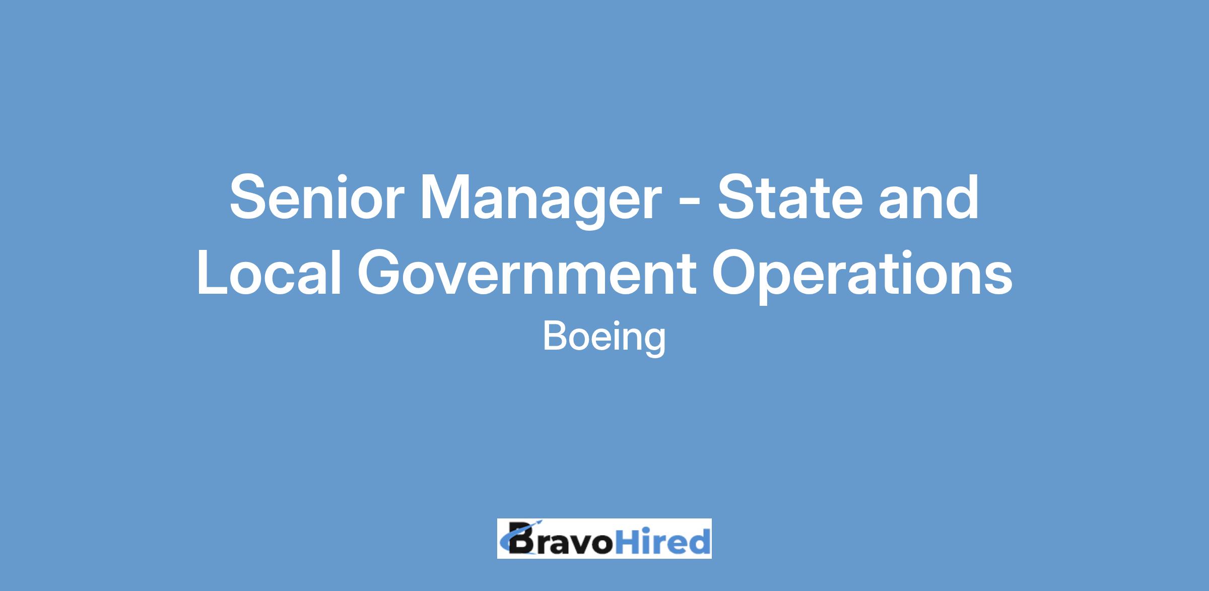 The Boeing CompanyBoeing is seeking a Senior Manager - State and Local Government Operations - to join our Government Affairs team in Arlington, VA. This team contributes to public policy development for the company and is looking for a dynamic, enthusiastic and engaged professional to serve as a valuable contributor toward our legislative and regulatory goals.