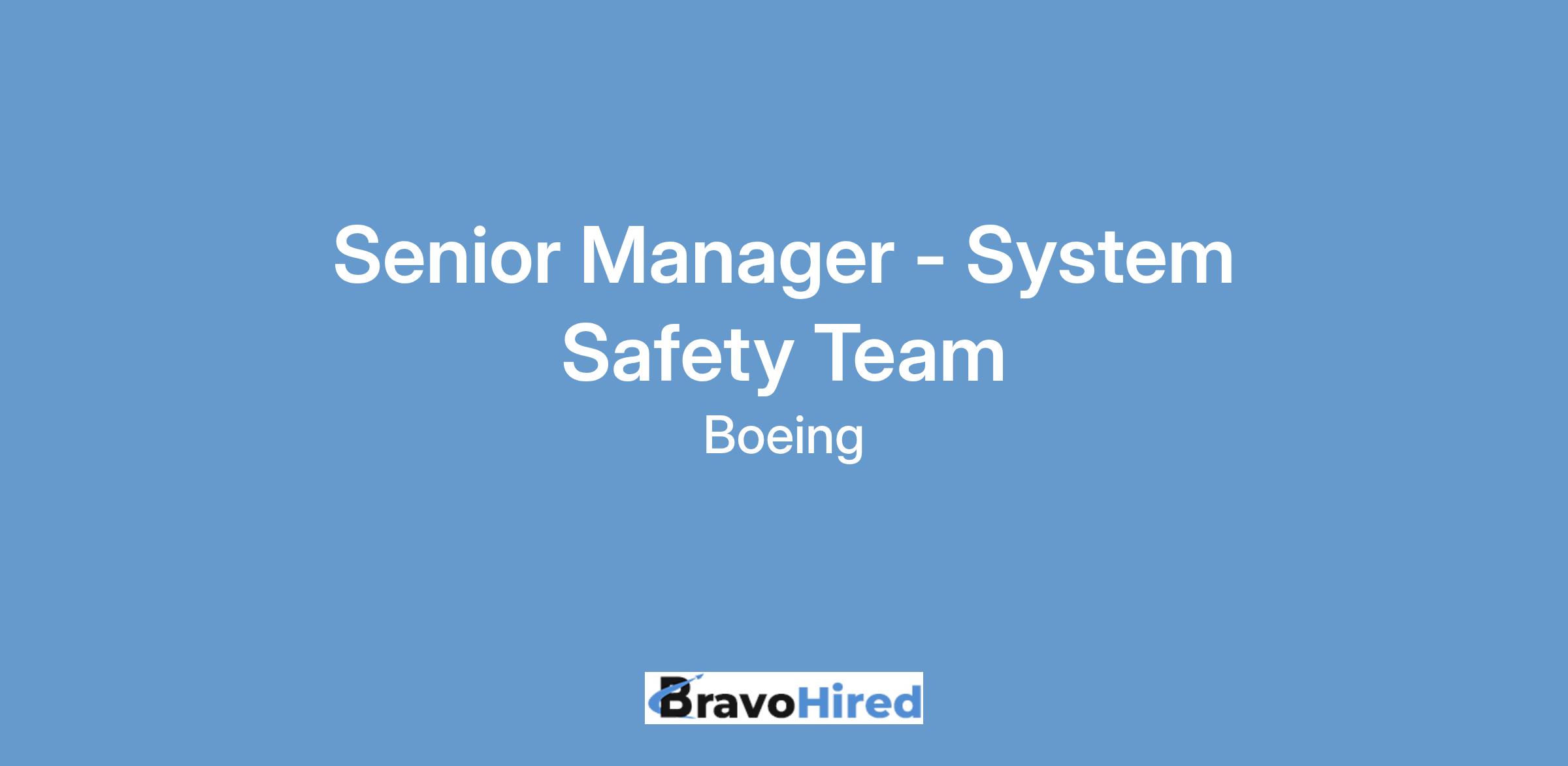 The Boeing CompanyBoeing Defense, Space and Security (BDS) has an exciting opportunity for a Senior Manager, System Safety Team to lead the System Safety Team on a proprietary program.