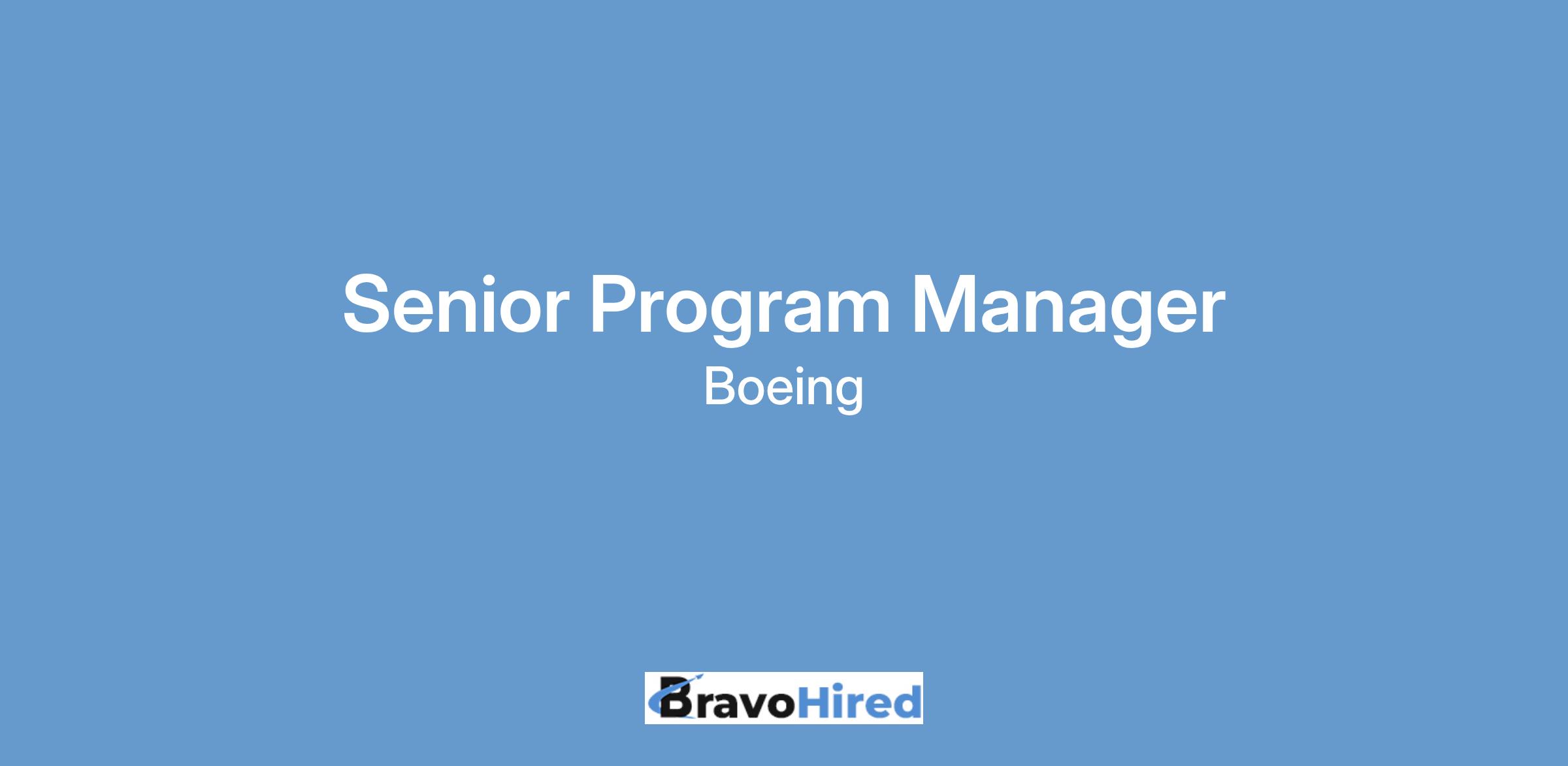 Boeing Defense, Space & Security (BDS) has an exciting opportunity for a Senior Program Manager (Level L) to join our dynamic team in Berkeley, Missouri.