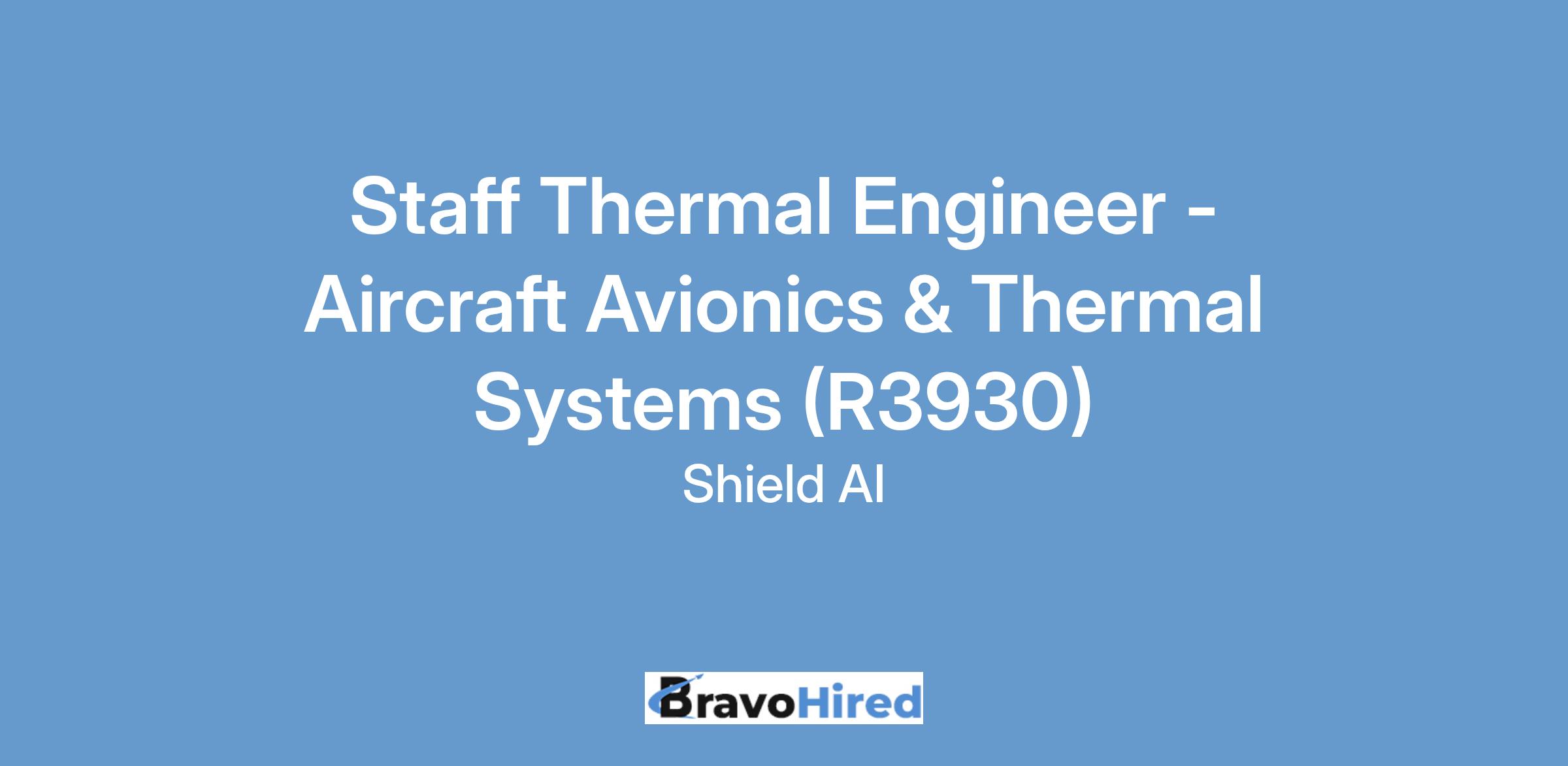 As a Staff Thermal Engineer at Shield AI, you will support the design, analysis, and integration of aircraft avionics thermal management systems, with opportunities to flex into aircraft-level thermal and fluid systems.
