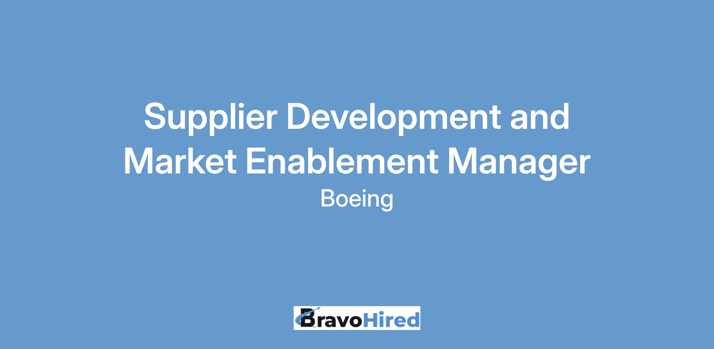The Boeing CompanyBoeing Commercial Airplanes (BCA) is looking for a Supplier Development and Market Enablement Manager to join our Strategy & Supplier Development and Market Enablement team in Everett, WA or North Charleston, SC.