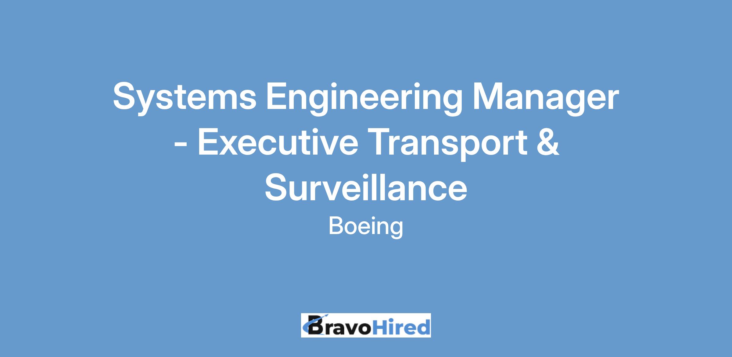 The Boeing Defense, Space & Security (BDS) organization is seeking a Systems Engineering Manager - Executive Transport & Surveillance to join the Systems Engineering team located in Oklahoma City, Oklahoma.