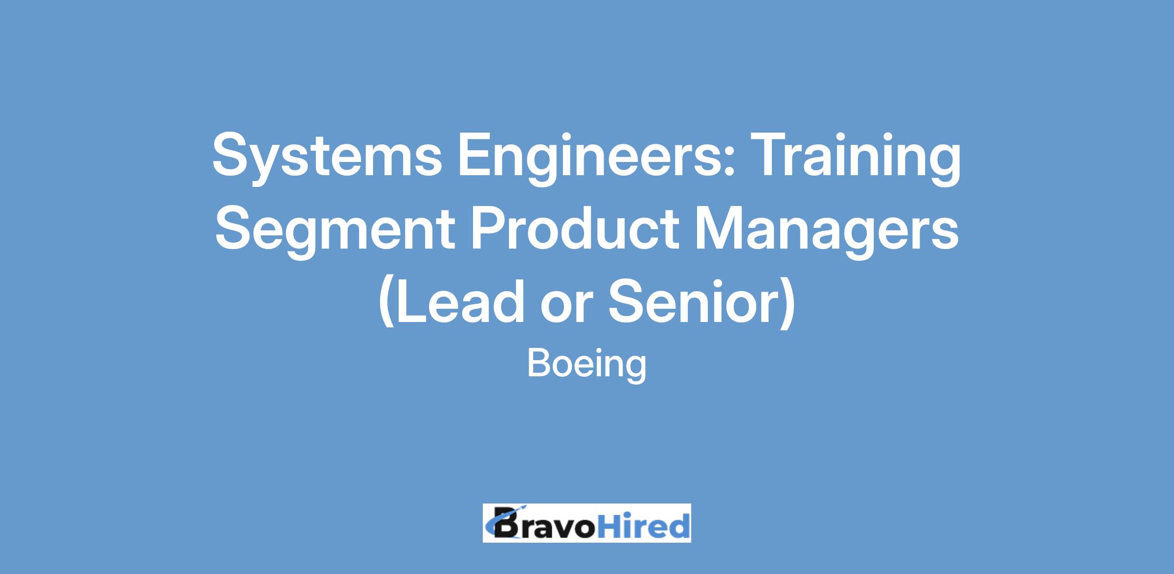 The Boeing CompanyBoeing Global Services (BGS) is currently hiring for a broad range of experience levels including Lead and or Senior Level Systems Engineers: Training Segment Product Managers for a proprietary program located in Hazelwood, Missouri.
